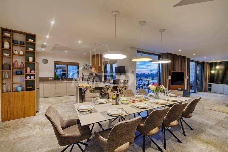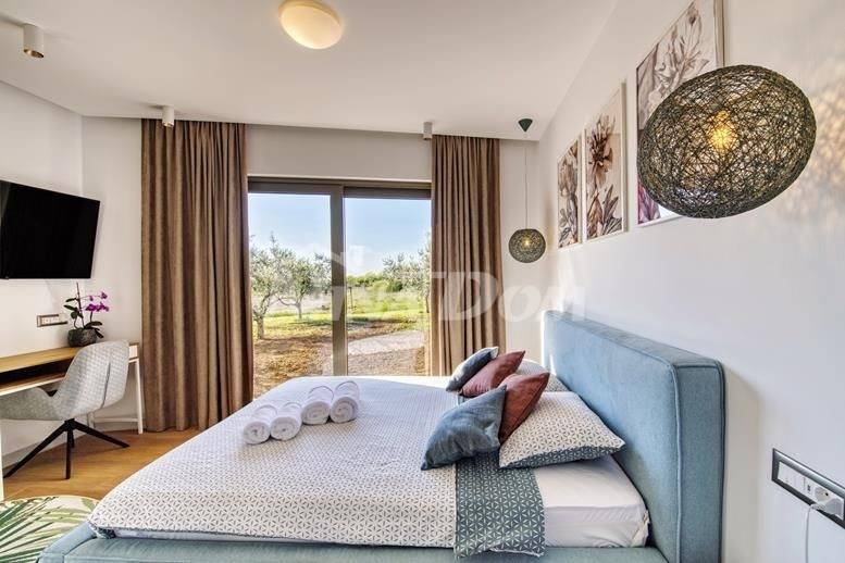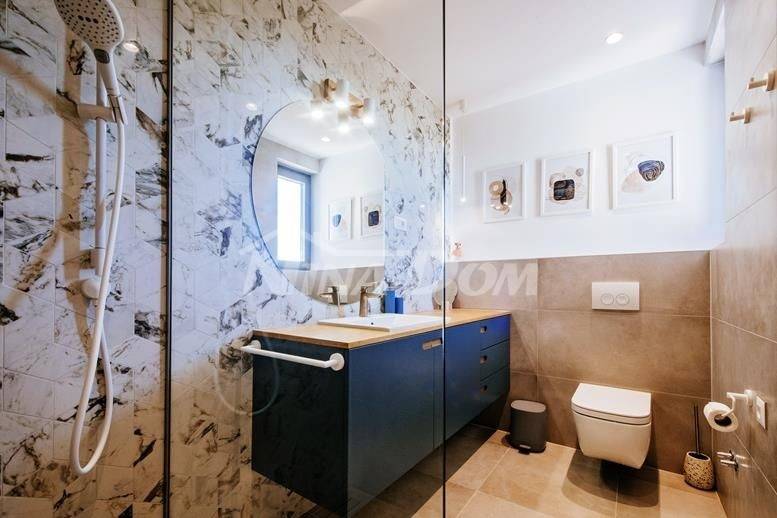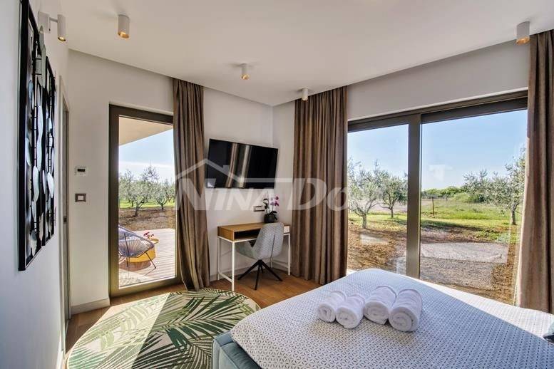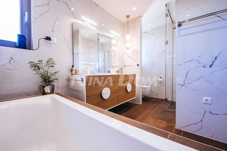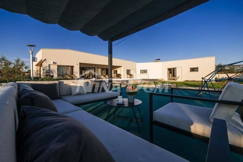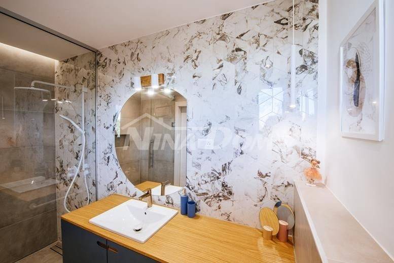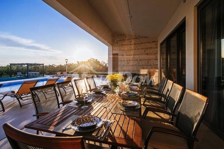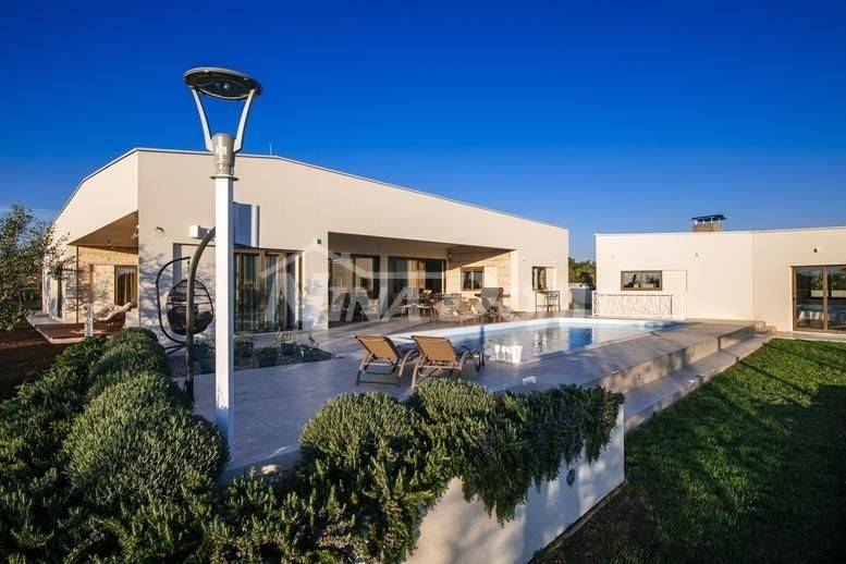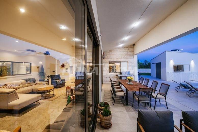 Luksuzna vila s bazenom-novogradnja, sastoji se od glavnog i pomoćnog objekta u glavnom se nalaze 4 sobe s kupaonama od toga jedna master bedroom, gostinjski wc, kuhinja, blagovanje, dnevni boravak, vešeraj, strojarnica,garaža, a u pomoćnom objektu se nalazi jedna spavaća soba,soba za druženje sa kaminom,wc i alatnica.