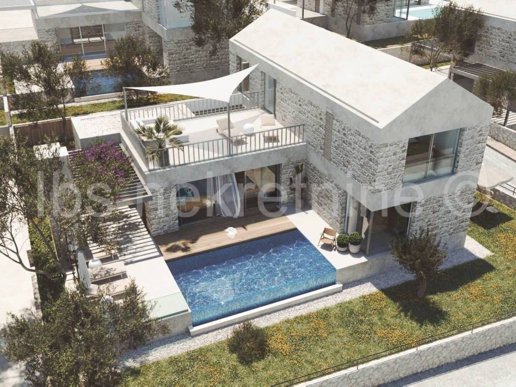 Slikovito smještene rezidencije s visine gledaju na tirkizno Jadransko more. Pažljivo odabrana lokacija pruža jedinstvenu kombinaciju mira i opuštanja od gradske vreve nedaleko od samog centra mjesta. Koncept stvoren za ljude koji cijene mir i funkcionalnost u nježnom mediteranskom okruženju. Vile kombiniraju moderne trendove s lokalnim mediteranskim stilom što ih čini posebnima, a ujedno omogućuje da se uklope u okolinu. Vila tradicionalnog stila je klasična i bezvremenska s trunkom modernosti, izrađena od pažljivo promišljenih materijala. Stoljetna povijest otoka prikazuje se kroz kamene detalje koji prekrivaju fasadu. Kvadratura od 230 m2 brutto.