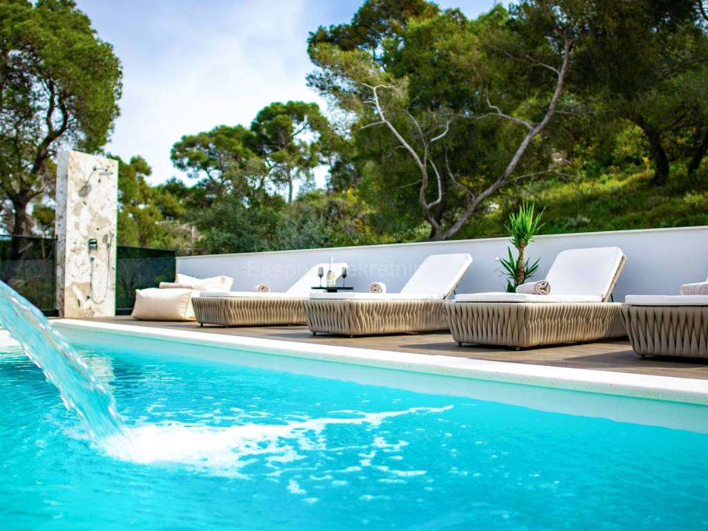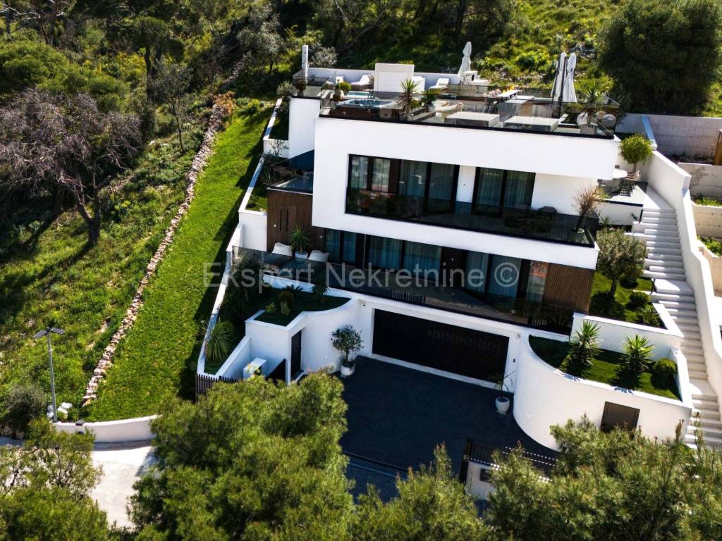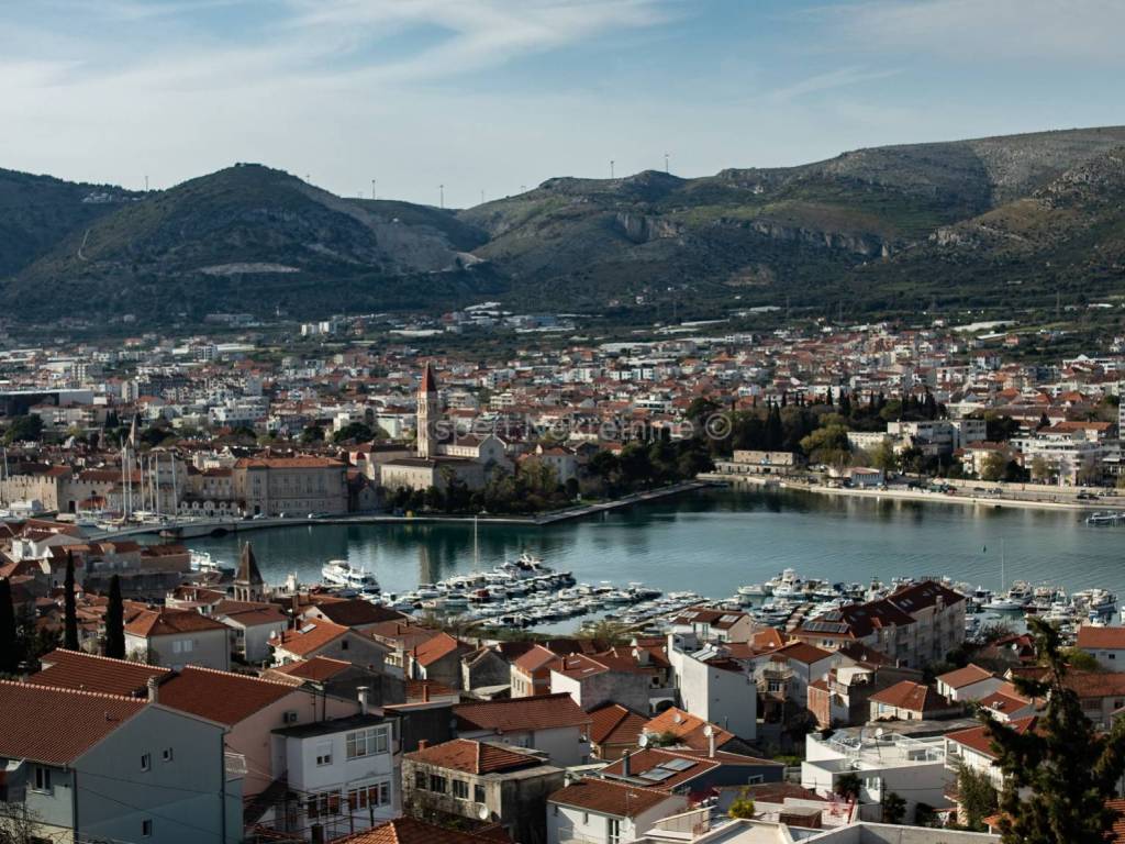 Trogir, luksuzna villa 312 m2 na tri etaže sa liftom ,kompletno luksuzno namještena,novogradnja sa krovnim bazenom na mirnoj lokaciji sa lijepim i otvorenom pogledom na more i grad.Villa se nalazi na parceli od 466 m2.