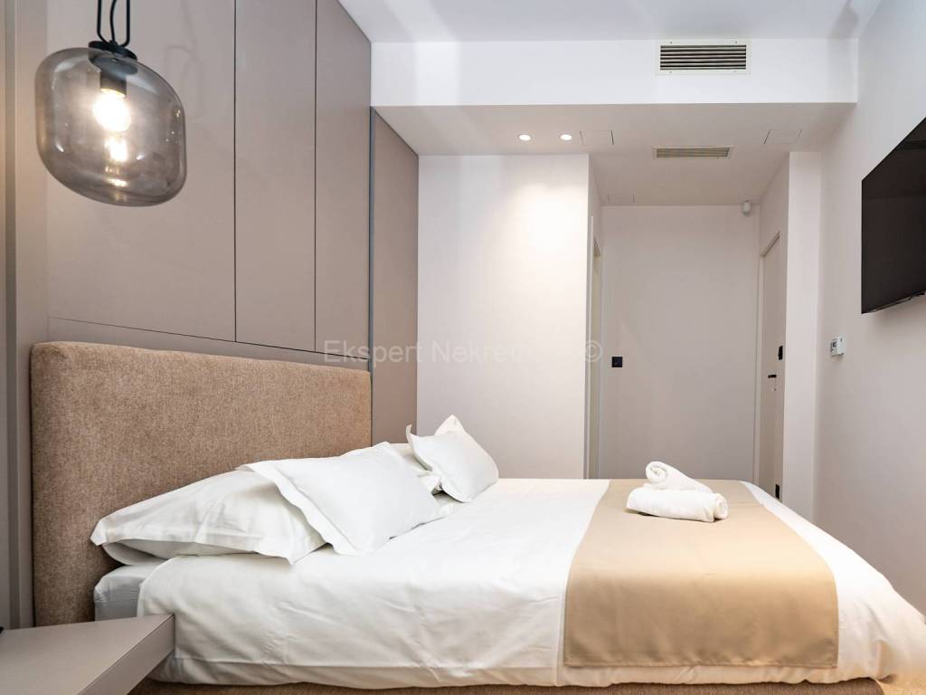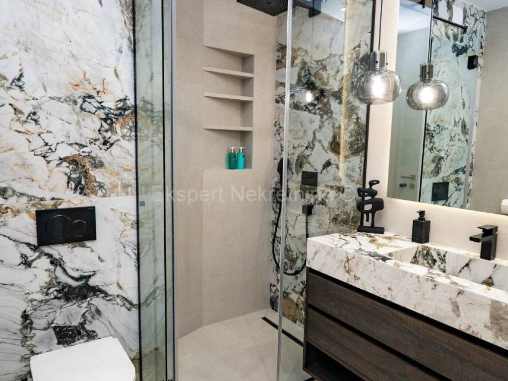 Na suterenu se nalazi dupla garaža,teretana sa saunom, svlačionica, kupatilo,hodnik,koltovnica(centralno grijanje i hlađenje,centralni bojler), praonica te stepenište za gornje etaže kao i lift.