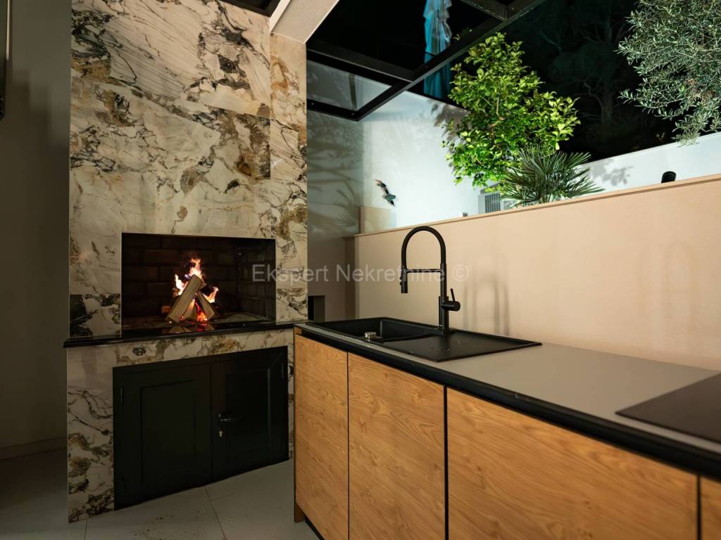 Cijela kuća ima podno grijanje te kanalne stropne klime.Villa je dovršena,i kompletno opremljena novim i modernim namještajem i uređajima.Ugrađeni su kvalitetni materijali,(vrhunska keramika,pvc stolarija,komarice,grijanje i hlađenje,kompletno nov namještaj itd...) te je odmah useljiva.Mirna i tiha lokacija udaljena od gradske gužve,a opet dovoljno blizu svih sadržaja u svega par stotina metara.Vlasništvo kao i ostala dokumentacija uredni.Za više info kontaktirati agenciju.