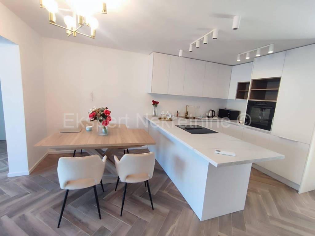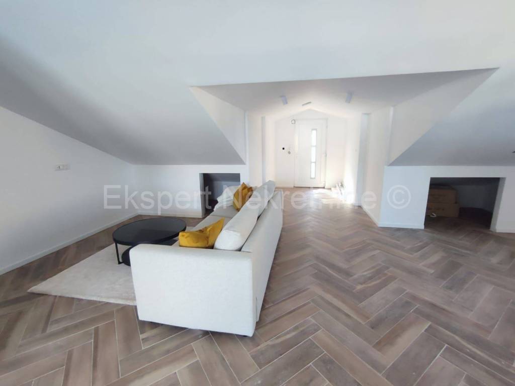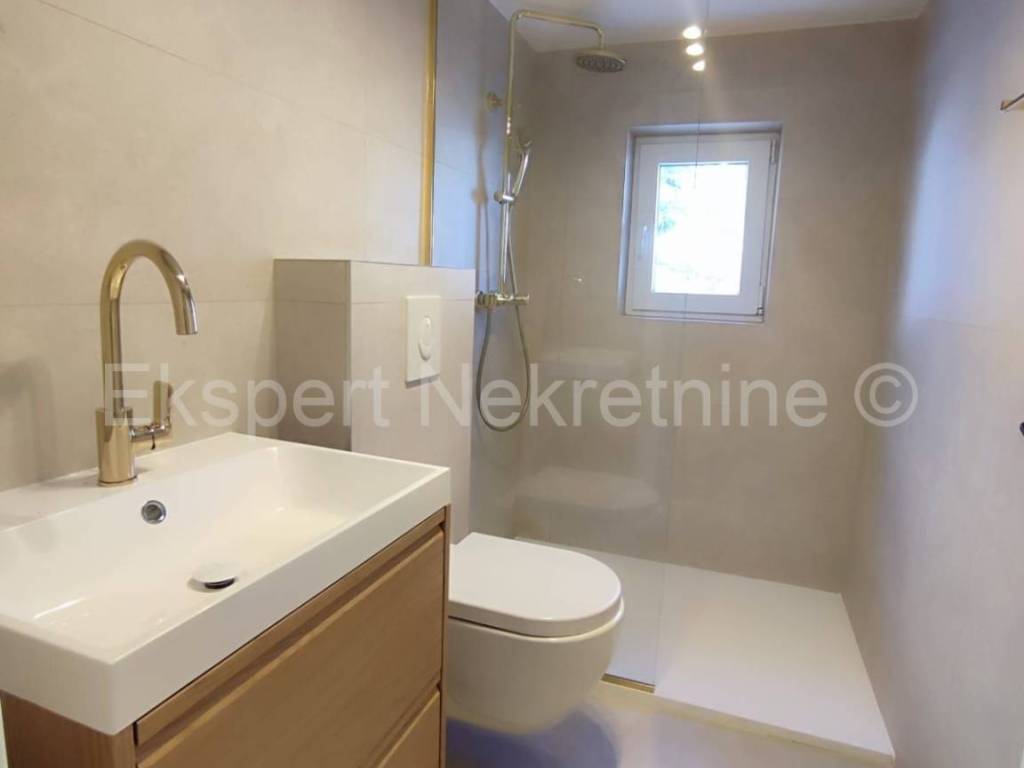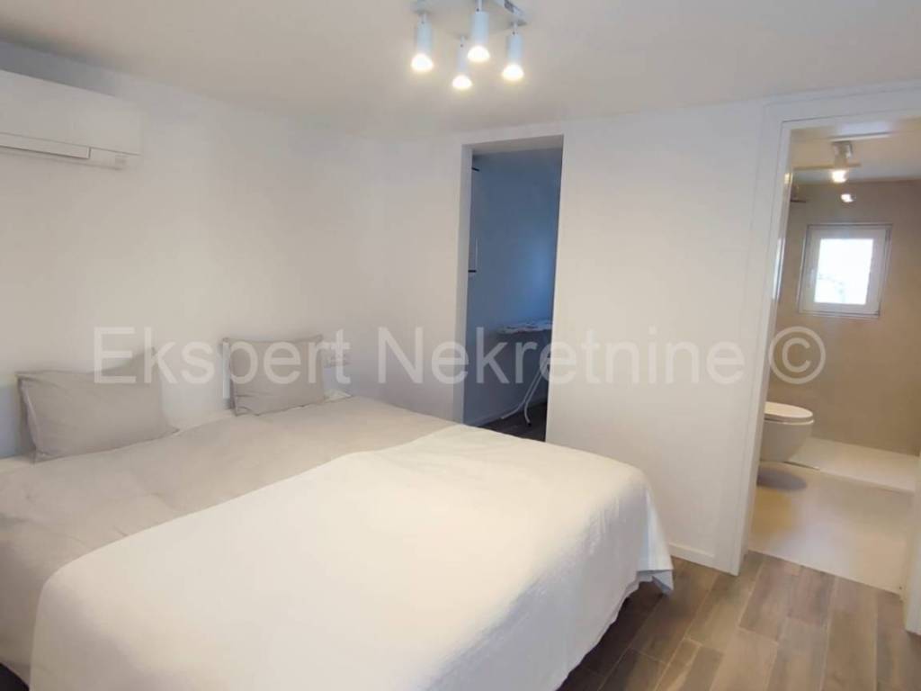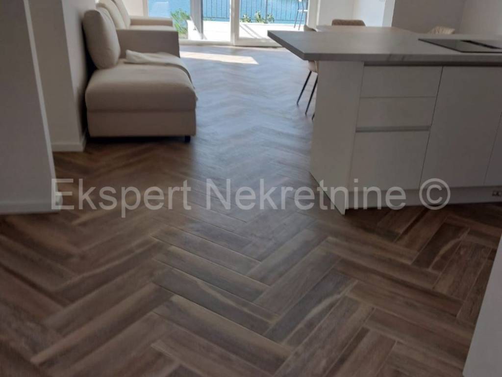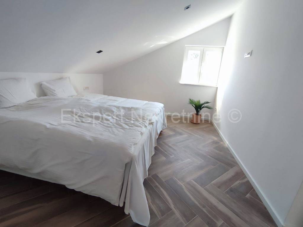 Na etaži prizemlja nalazi seprostrani dnevni boravak s blagovaonicom i kuhinjom, jedna spavaća soba, kupaonica, wc i terasa, dok je na prvom katudnevni boravak s blagovaonicom i kuhinjom, tri spavaće sobe, dvije terase, kupaonica i dva WC-a. Te na zadnjem katu u potkrovlju se nalazidnevni boravak s blagovaonicom i kuhinjom, dvije spavaće sobe, praonica, kupaonica i WC i dva balkona s kojih se pruža predivan pogled na more.