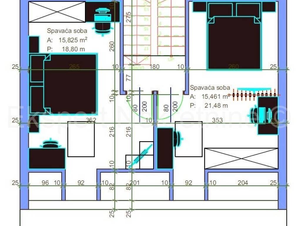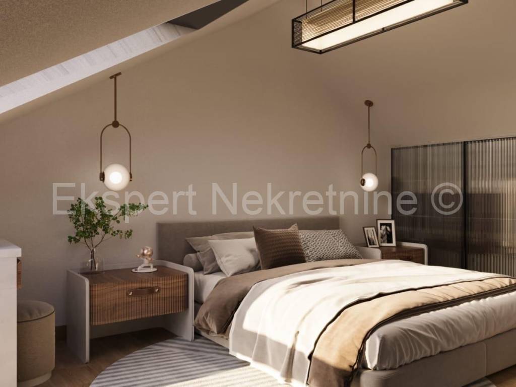 Trogir,Saldun,dvosoban dvoetažan stan 82 m2 (50m2 +32m2 tavana) u novogradnji u manjoj stambenoj zgradi sa samo 8 stanova.Stan se nalazi na drugom (zadnjem) katu ,orijentiran je sjever jug-istok,a sastoji se od, kupatila, hodnika,kuhinje sa blagovaonicom i dnevnog boravka te lođe na donjoj etaži te dvije spavaće sobe na gornjoj etaži. Stan ima otvoren panoramski pogled na more .Stanu pripada jedno parking mjesto.