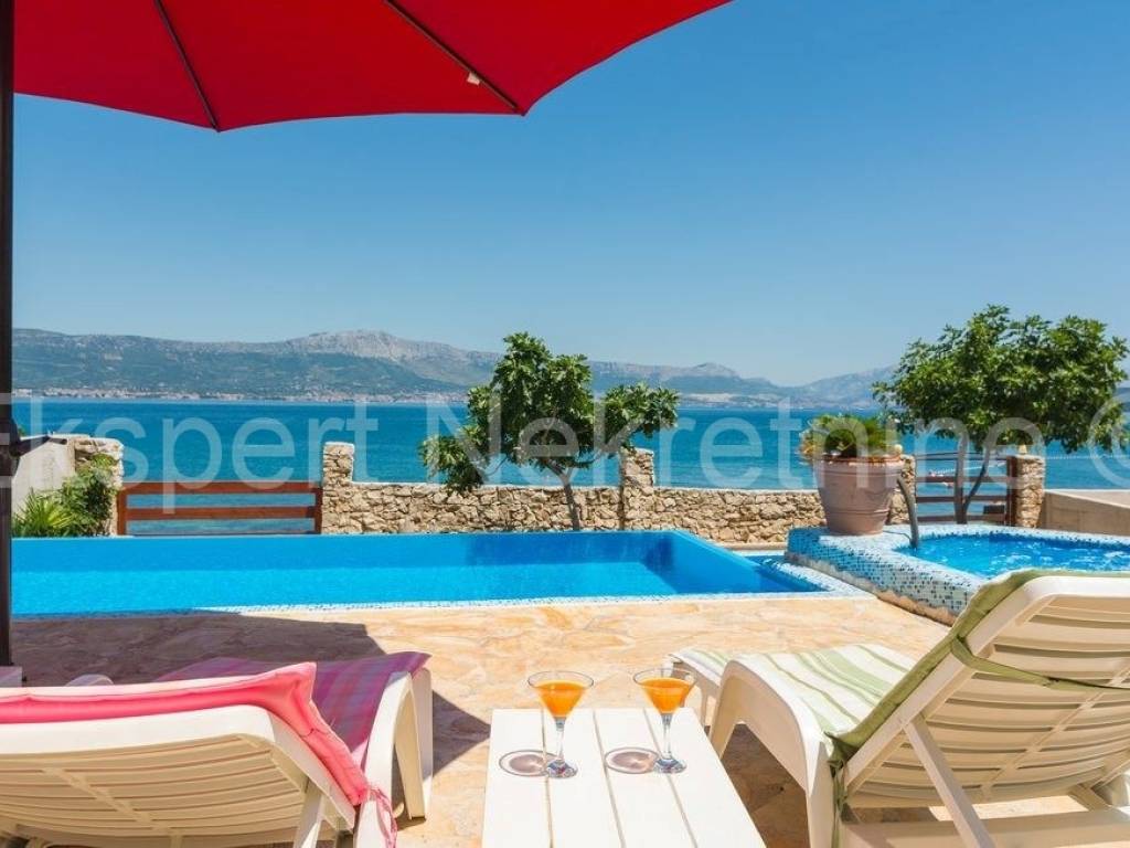 Čiovo,Slatine samostojeća kuća 260 m2 na zemljištu od 800 m2 s bazenom koja ima direktni izlaz na plažu.Kuća se proteže na tri etaže+ nisko potkrovlje.