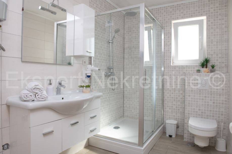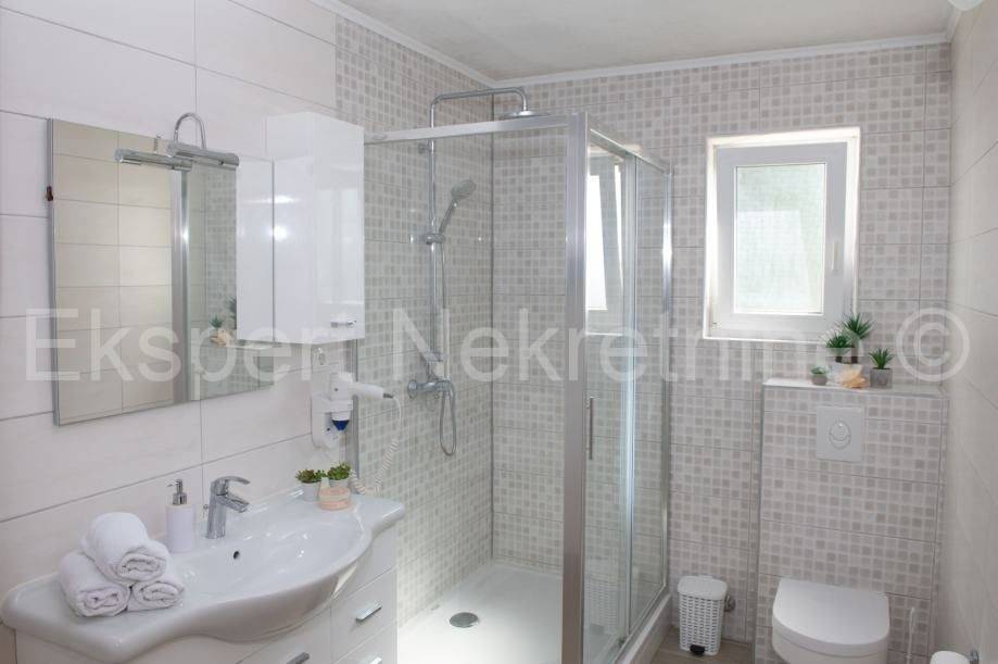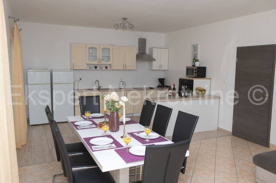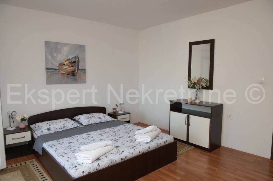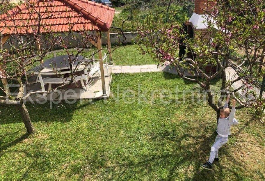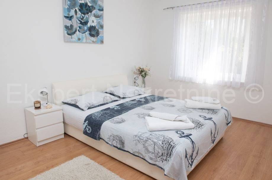 Podstrana,Strožanac,dvojna kuća 350 m2 s vrtom cca 100 m2 i dva vanjska parking mjesta.Kuća ima pogled na more i grad Split.Prodaje se potpunonamještena.U prizemlju kuće se nalazi kuhinja s dnevnim boravkom , dvije sobe, jedna s bračnim krevetom a jedna sa dva odvojena kreveta, i kupaona.Na katu se nalazi dvije sobe s balkonima s pogledom na more , i jedna soba s pogledom na vrt.Vrt cca 100m2 s kaminom i vrtnom kućicom s velikim okruglim stolom za 10 osoba.Kuća je udaljena 500 m od plaže.Papiri uredni 1/1.