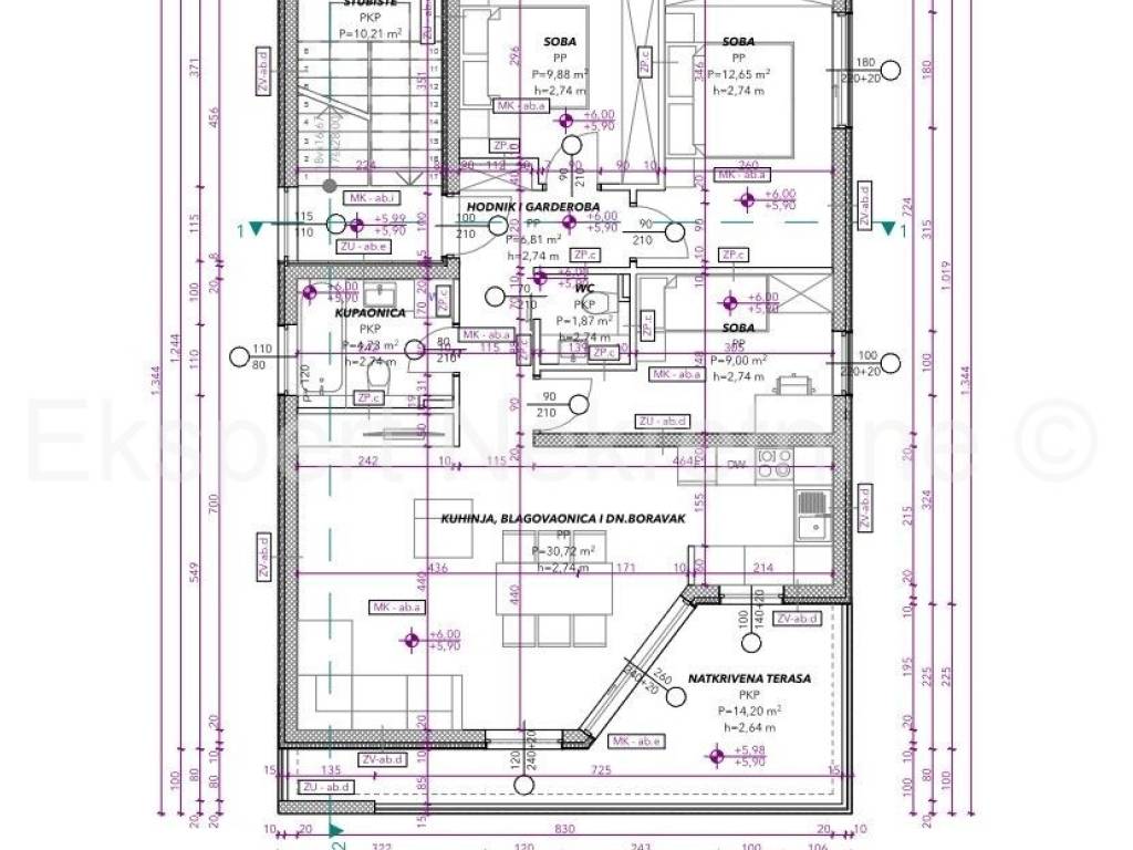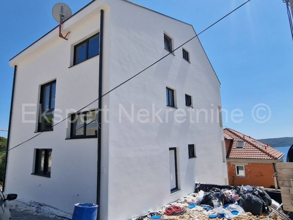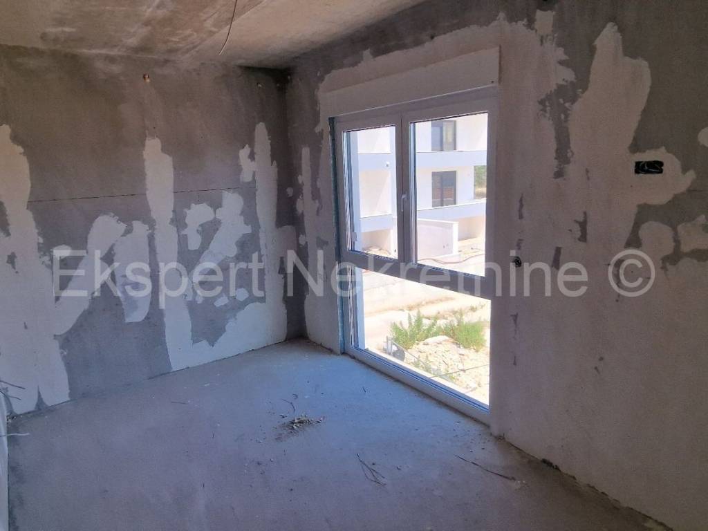 Trogir,Čiovo,Saldun, trosoban stan 90 m2 (76m2 plus 14 m2 terase) u novogradnji u manjoj stambenoj zgradi sa samo 4 stana. Stan se nalazi na 2.katu zgrade ,a sastoji se od tri spavaće sobe,kupatila,wc-a,hodnika,kuhinje sa blagovaonicom i dnevnog boravka,te velike terase(14 m2) sa koje se pruža lijep pogled na more i otoke .Stan je orijentiran istok-jug-sjever-zapad.Stanu pripadaju 2 parking mjesta.Zgrada se nalazi na odličnoj i mirnoj lokaciji, samo 400 m udaljena od mora plaže te 1000 m od stare gradske jezgre Trogira.Početak radova je planiran za 09.mj./2023.g a završetak je planiran krajem 2024 godine. Kvalitetna oprema(invreter kliime,pvc stolarija,kvalitetna keramika.podno grijanje,komarice, ,el.rolete,protuprovalna vrata...itd) .Plaćanje po fazama gradnje.Pravomoćna građevinska dozvola.U ovoj fazi se primaju rezevacije.Za više informacija kontaktirati agenciju .
