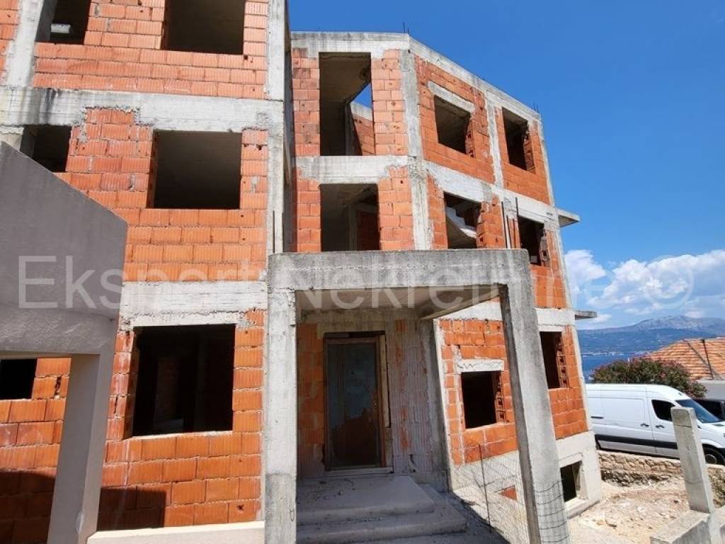 Trogir,Arbanija,nedovršena samostojeća kuća 498 m2,na 5 etaža, (podrum,suteren,prizemlje i dva kata) od mora udaljena samo 140 metara.Kuća je napravljena u roh-bau izvedbi nalazi se na parceli od 581 m2.Sastoji se od podruma,suterena,prizemlja,te dva kata.Svaka etaža je predviđena po jedan veliki stan od cca 110 m2,ali može se pregraditi i drugačije.Svaki stan ima pogled na more,od koje je kuća udaljena samo 140 m. Kuća je legalizirana te je urednog vlasništva.Cijena nije fiksna.Za više info kontaktirati agenciju.