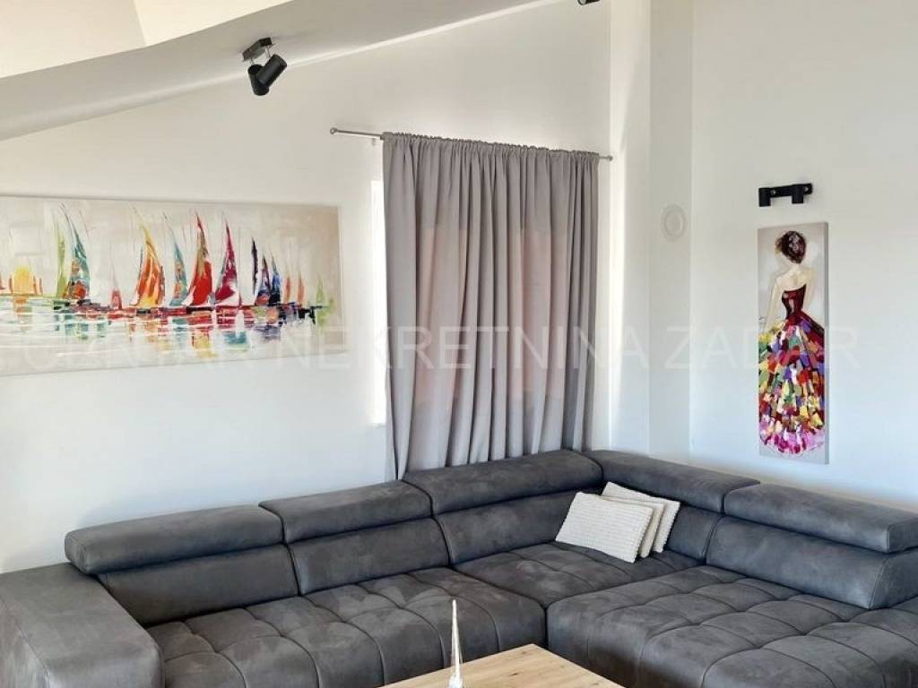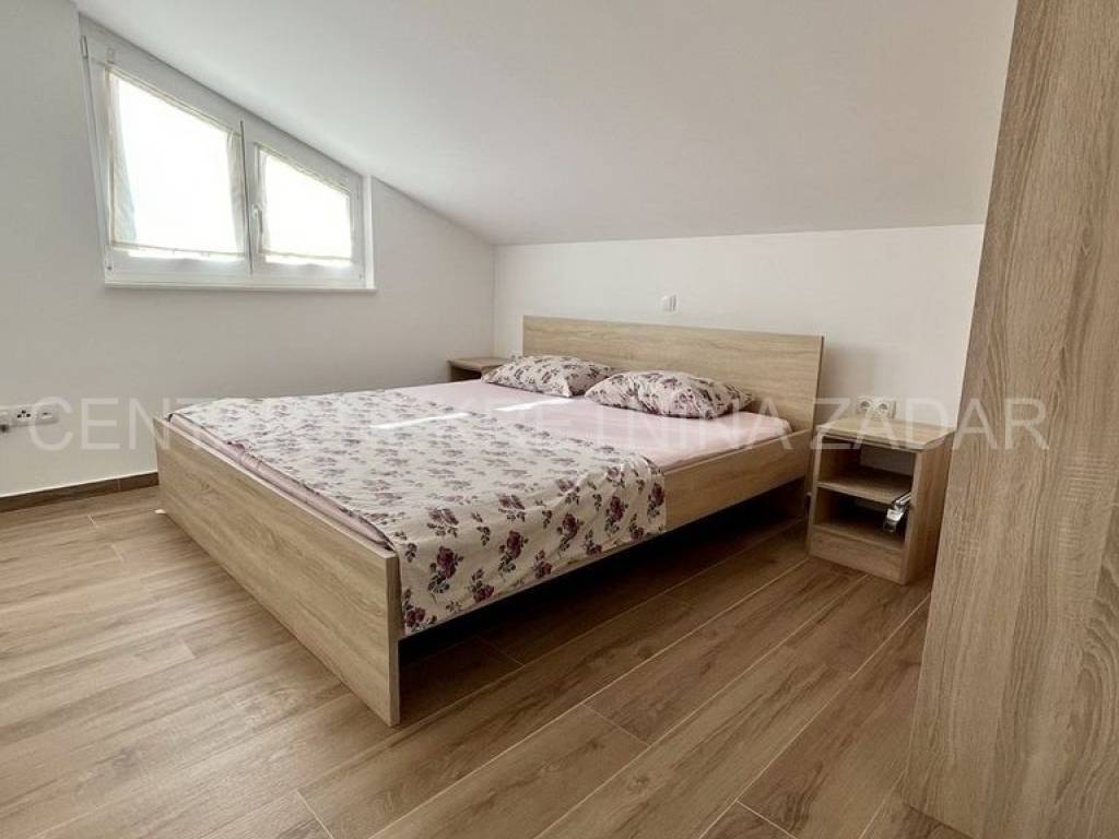 Prodaje se dvosobni apartman smješten na drugom katu (u potkrovlju) zgrade u mjestu Pašman na istoimenom otoku. Zgrada je dovršena 2023. U zgradi su samo tri stambene jedinice, po jedna na svakoj etaži.