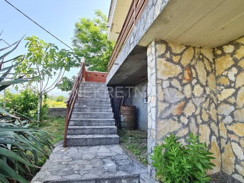 Dvorište je ograđeno, puno mediteranskog drveća i cvijeća. Pred kućom je jedno parkirno mjesto. Veličina okućnice pruža mogućnost izgradnje bazena i dodatnih sadržaja.