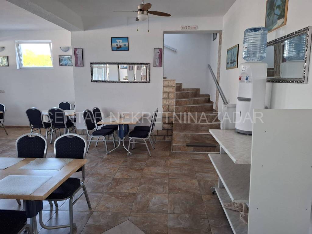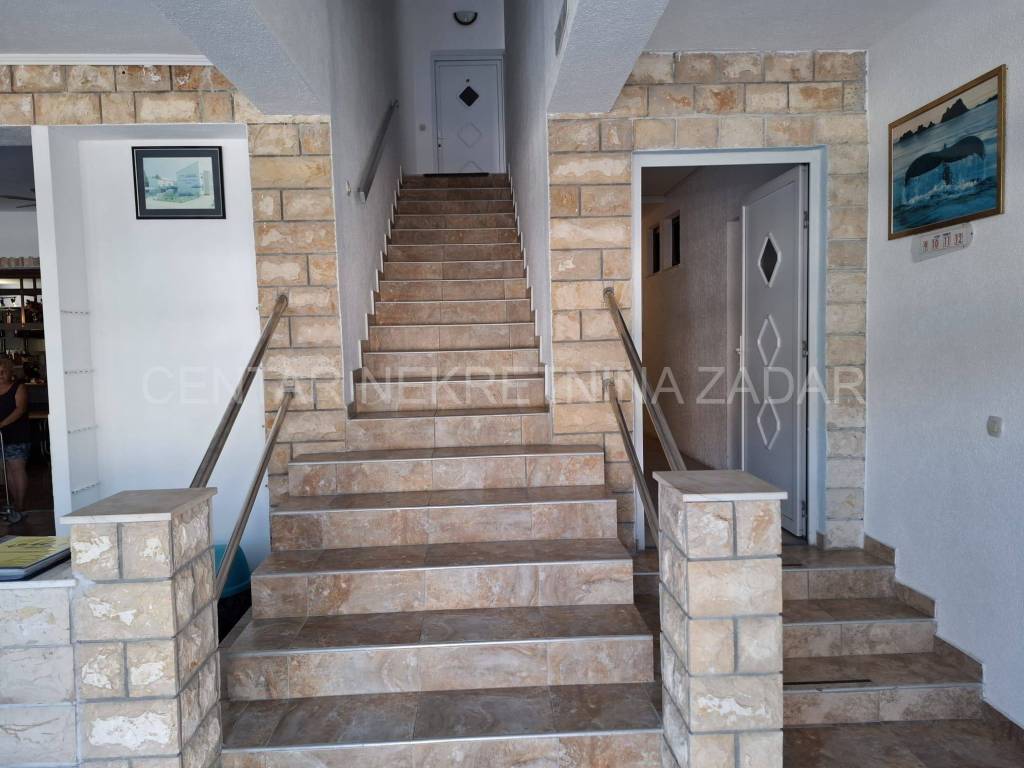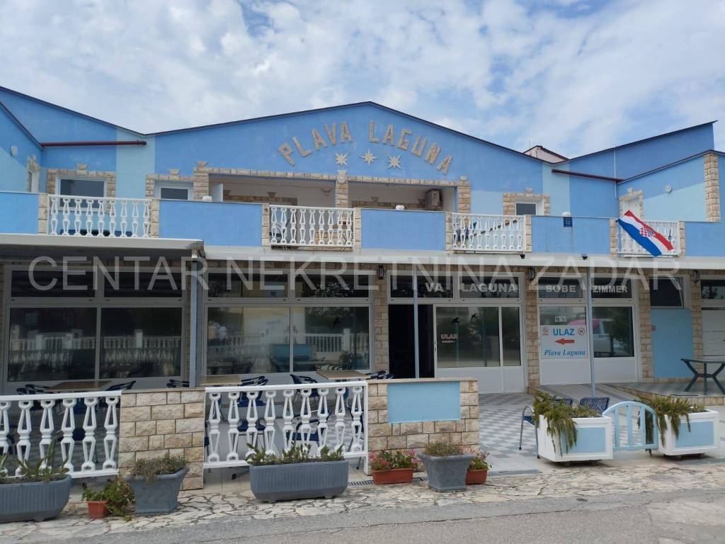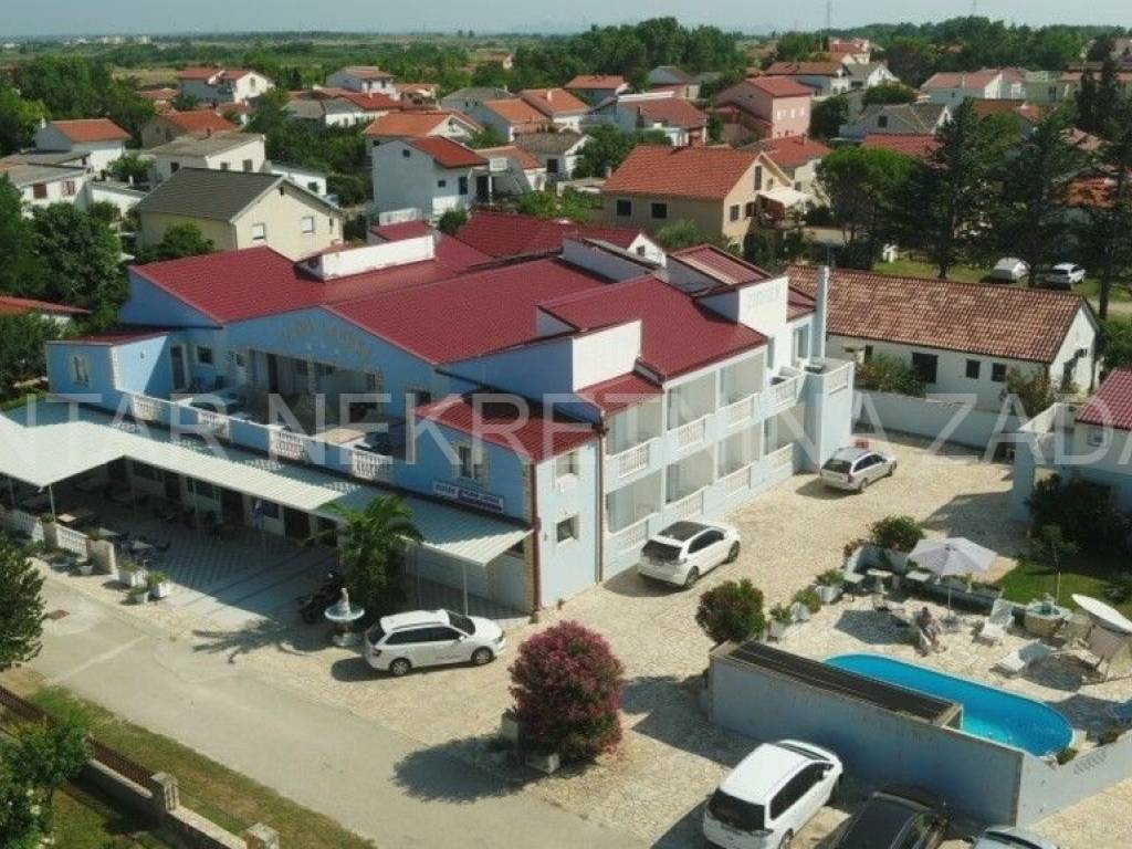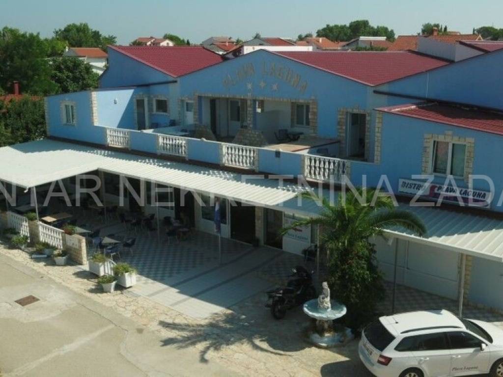 Prodaje se hotel u Sabunikama površine 1436 m2, udaljen od pješčane plaže 200 metara. Smješten je na zemljištu površine 1686 m2. Hotel se sastoji od prizemlja i kata, na kojima su raspoređene ukupno 22 sobe s vlastitim kupaonicama, a koje mogu primiti 75 osoba. Sobe su podjeljene na 16 trokrevetnih i 6 dvokrevetnih soba s dodatnim ležajevima. Svaka soba ima vlastitu kupaonicu, privatnu terasu i potpuno je opremljena za boravak. Dodatni sadržaji hotela uključuju restoran s koji može primiti 70 osoba, bazen s tuševima i toaletima, podrum , dodatne prostorije (arhiva, ured, kotlovnica, skladišni prostor) i više od 20 parkirnih mjesta. Restoran je opremljen profesionalnom kuhinjom i otvoren za sve posjetitelje, a ne samo hotelske goste. Hotel je opremljen solarnim panelima za grijanje tople vode što smanjuje troškove energije. Uz navedeno, na posjedu je i pomoćni objekt sa 2 stambene jedinice.
