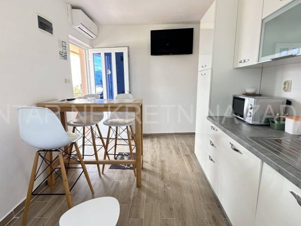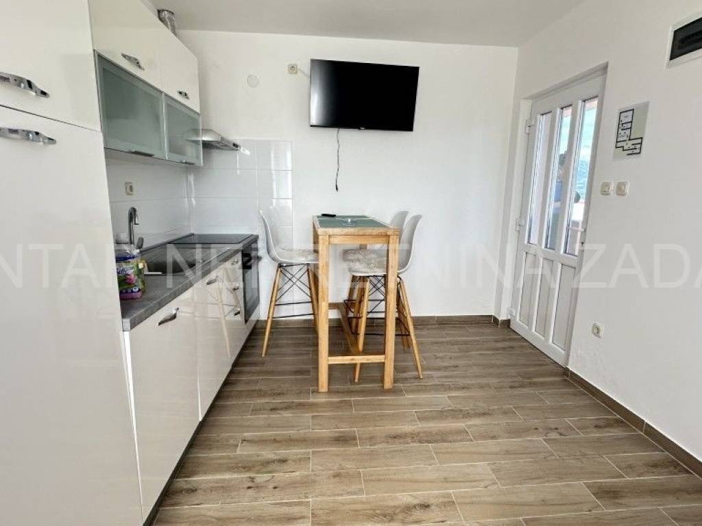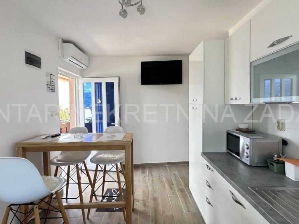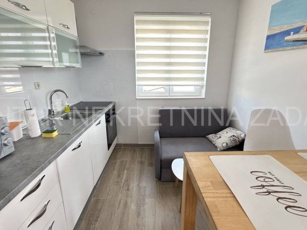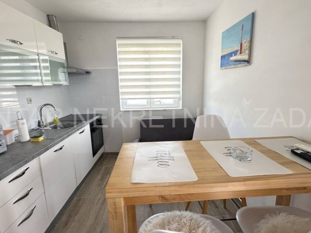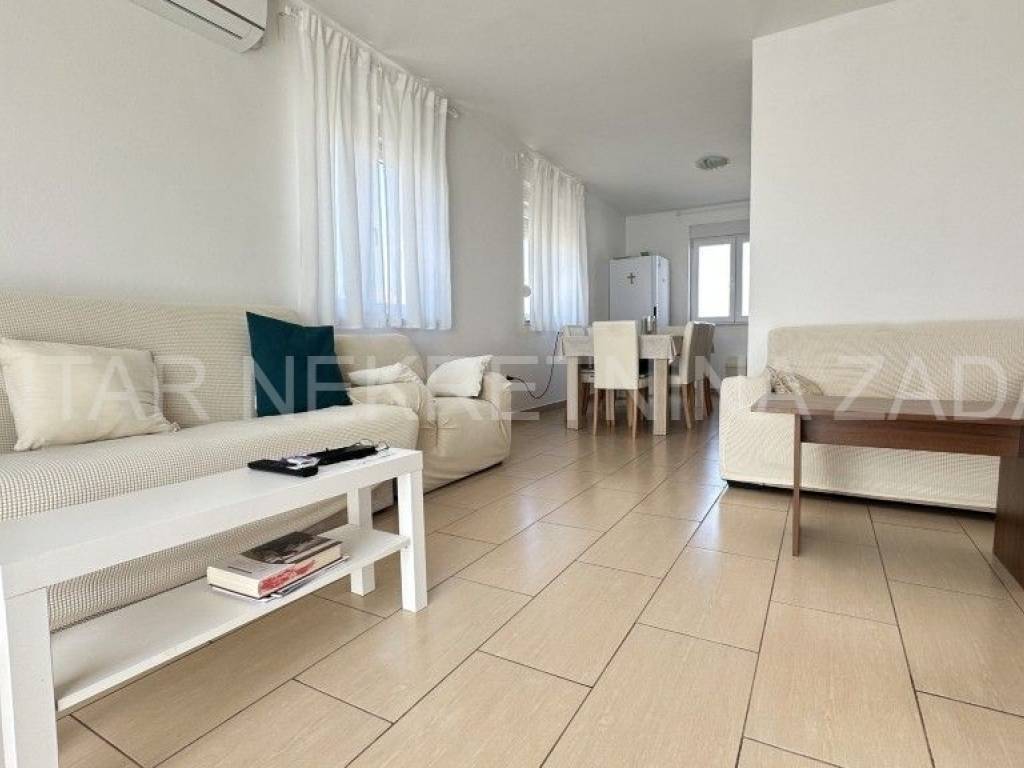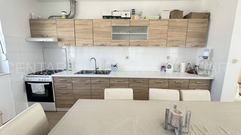 Prodaje se uređena kuća u Ražancu, 600 m udaljena od mora, a 850 m udaljena od plaže. Kuća površine 214 m2 smještena je na zemljištu veličine 437 m2, a sastoji se od prizemlja i kata. U prizemlju je smješten trosoban stan koji se sastoji od hodnika, tri spavaće sobe, kupaonice, toaleta i kuhinje s blagovaonicom i dnevnim boravkom s izlazom na dvorište. Na katu su smještena dva kategorizirana jednosobna apartmana s pogledom na more. Svaki apartman ima vlastiti ulaz i vlastitu lođu, a sastoji se od kuhinje s blagovaonicom, kupaonice i spavaće sobe. Početak gradnje započet je 2013.godine, a kuća je završena 2017.godine kada je napravljena fasada. Stolarija je PVC s roletnama. Svaki stan je klimatiziran, a grijanje je moguće i na dimnjak. Prodaje se namještena, bez potreba za dodatnim unutarnjim uređenjem. Okućnica je prostrana, s parkingom i gusternom za vodu, uređena s nekoliko mediteranskih biljaka. Za dodatne informacije, kontaktirajte nas na 091 607 0340.