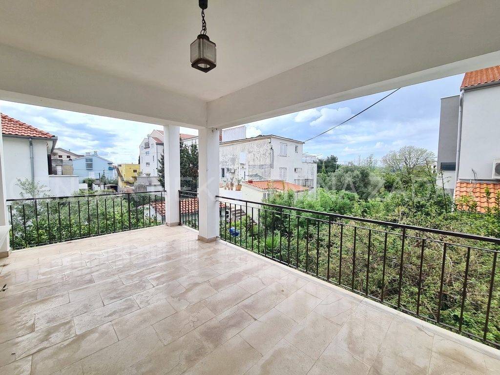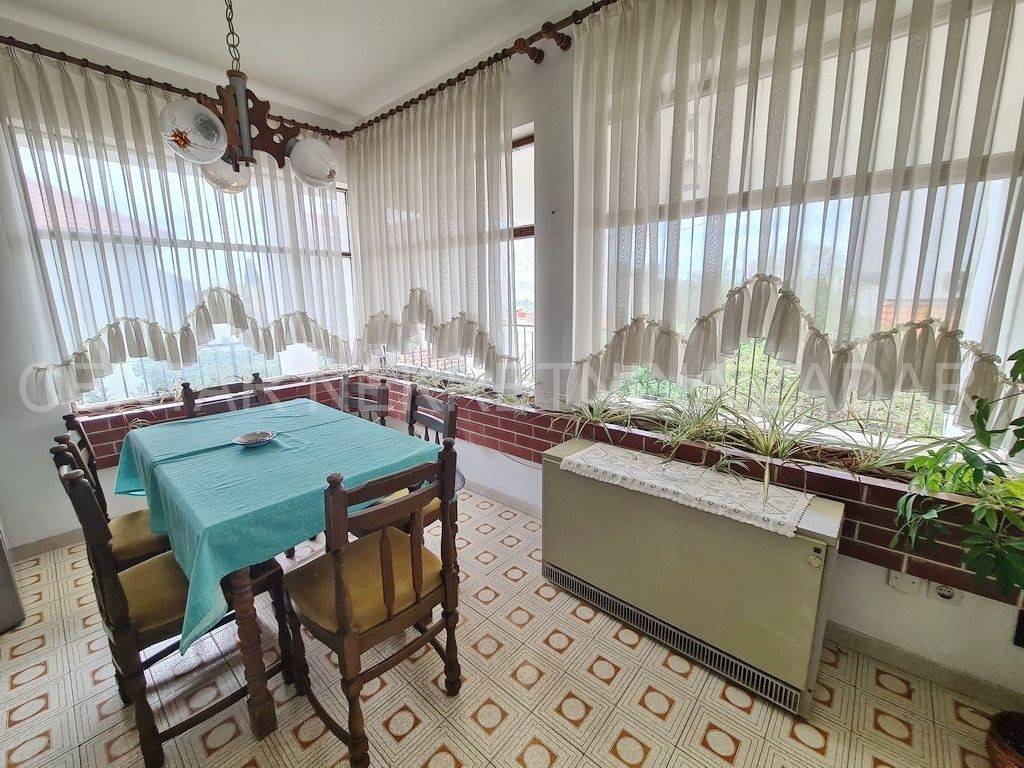 U prizemlju je novouređeni apartman od 41 m koji se sastoji od predsoblja, kuhinje s blagovaonom, jedne velike spavaće sobe i kupaonice. Pred ulazom je natkrivena terasa od 45 m. Na prvom katu je stan od 135 m koji se sastoji od predsoblja, kuhinje s blagovaonom, dnevnog boravka, tri velike spavaće sobe (13 14,5 m), kupaonice i toaleta. Kuhinja izlazi na lođu od 29 m koja se nastavlja na nenatkrivenu terasu od 48 m, dok dnevni boravak izlazi na lođu od 9 m. Na drugom katu je trosobni stan gotovo istog tlocrta, također s dvije lođe jedna ima pristup iz kuhinje (28 m), a druga iz dnevnog boravka (8,5 m). S obje se vide more i otoci. Iz hodnika se pristupa neuređenom potkrovlju.