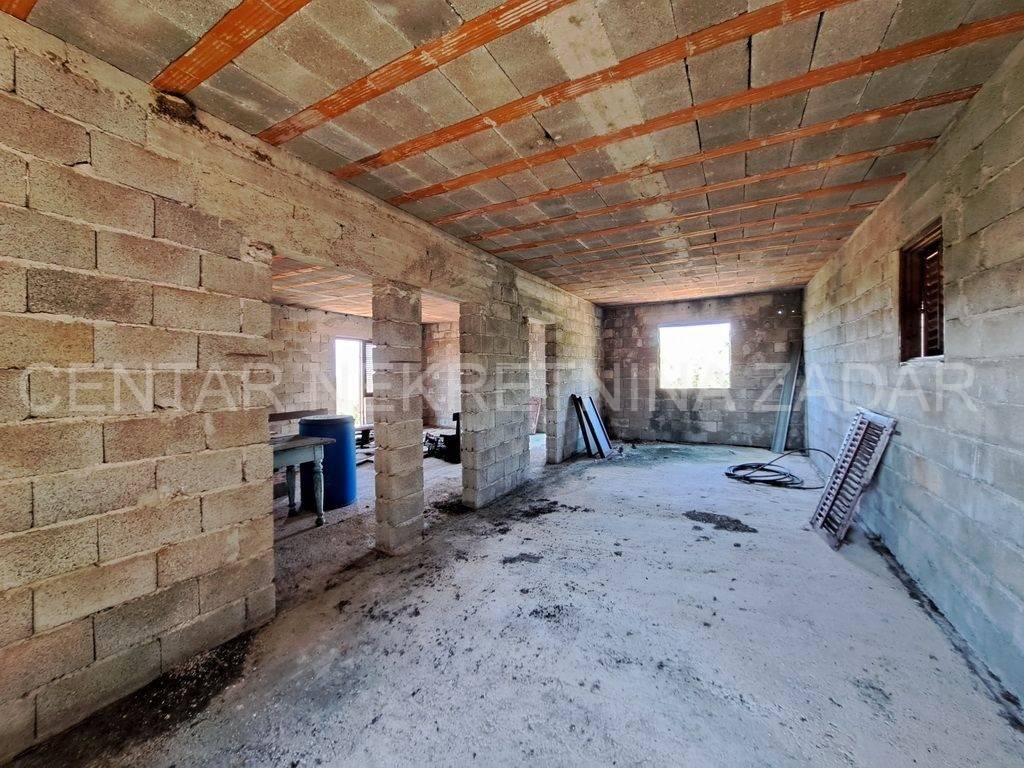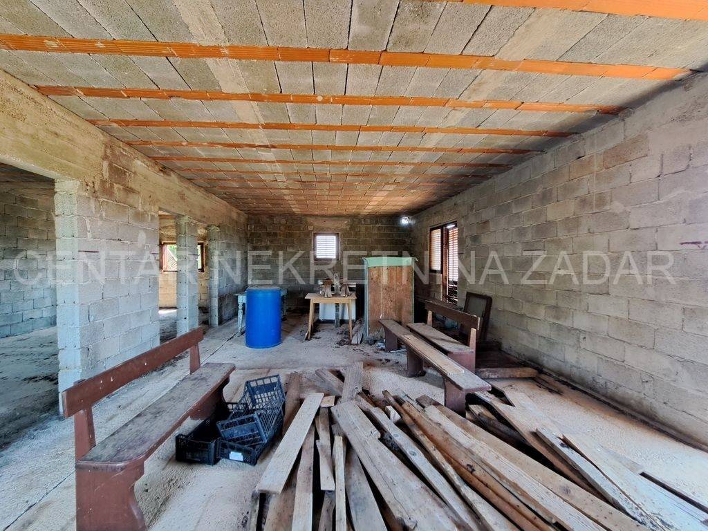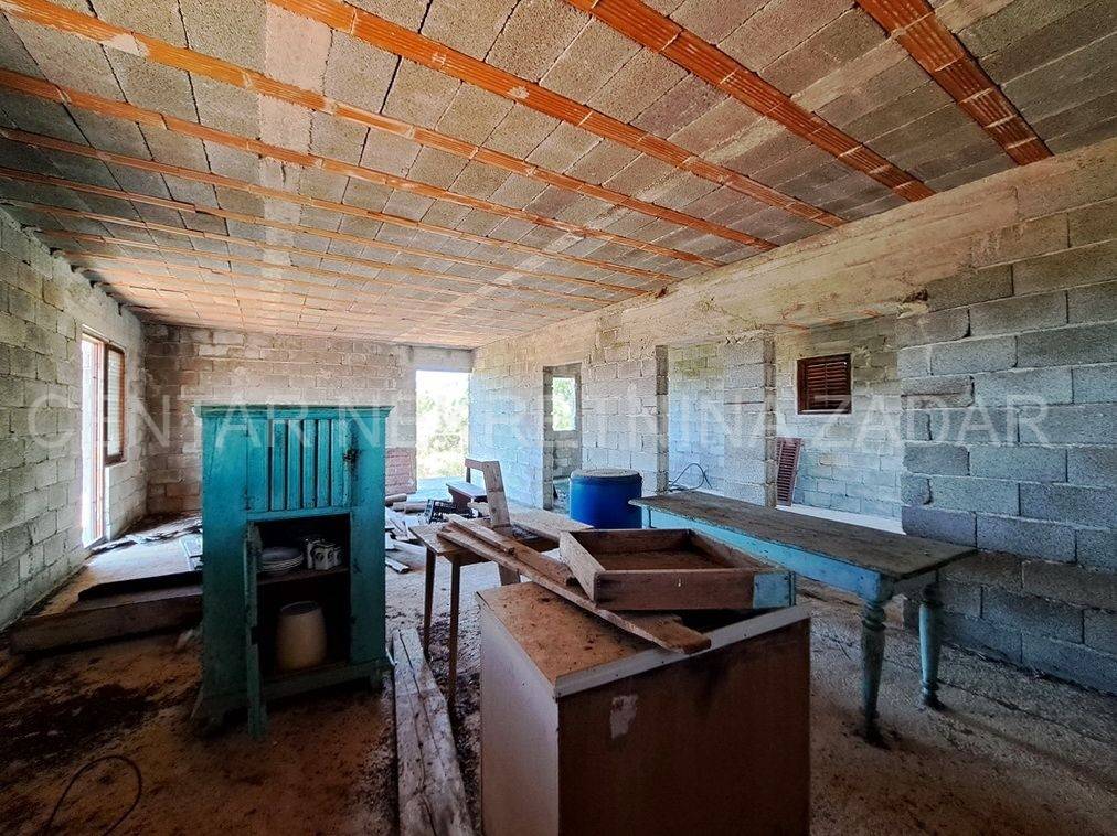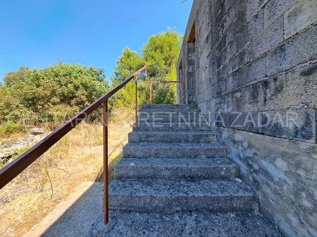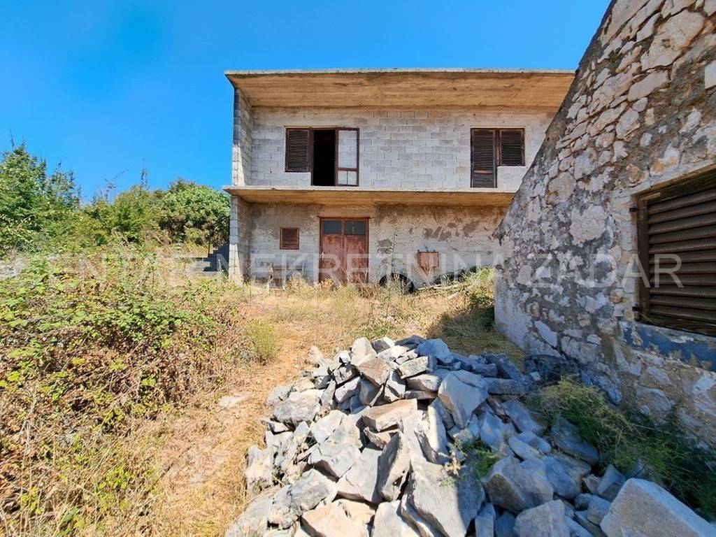 Prodaje se nedovršena samostojeća kuća smještena uSlivniciu blizini Posedarja. Kuća sesastoji od prizemlja i kata.Kuća ima bruto tlocrtnu površinu od 113 m2, što bi s katom činilo ukupno 226 m2. U prizemlju se nalazi prostor od 50-60 m2 namijenjen za stanovanje ili spremište dok je ostatak bio namijenjen za gusternu za vodu a sada se može prenamijeniti i iskoristiti u stambene ili spremišne svrhe. Na katu otvoreni prostor s terasom koji se vrlo lako može namjestiti i urediti prema željama i preferencijama budućeg vlasnika. Ispod samojećeg objekta nalazi se jedan pomoćni objekt koji predstavlja dvojni objekt sa susjedom. Pomoćni objekt ima bruto površinu od 47 m2 a čine ga hodnik i tri prostorije u prizemlju te potkrovlje. Pomoćni objekt je za renovaciju dok je glavni objekt potrebno dovršiti. Objekti se nalaze na velikoj okućnici od 1348 m2. Lokacija je vrlo mirna i tiha, a u krugu od 500 m od kućenalazi se trgovina dok je prva plaža 3.8 km udaljena od lokacije. Pomoćni objekt posjeduje Uvjerenje da je izgrađen prije 1968. godine, a Uporabna dozvola za građevine izgrađene prije 1968. godine je u tijeku ishođenja. Dok nedovršena samostojeća kuća je građena nakon 1968. godine bez dozvole te ju je potrebno legalizirati ili rušiti. CIJENA: 76.500 EUR