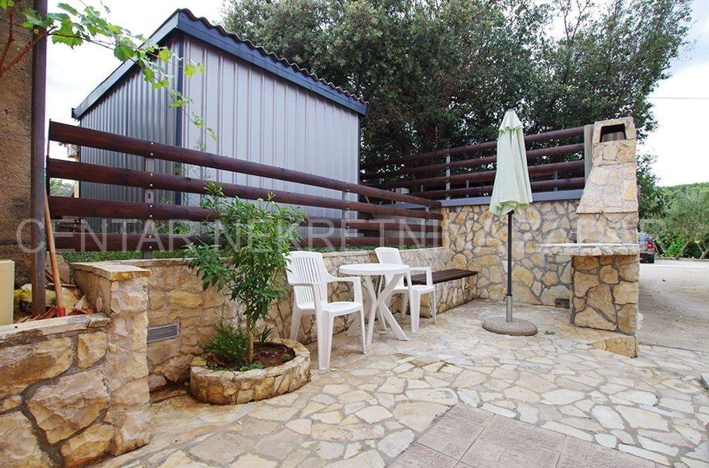 Kuću okružuje okućnica od 136 m2 uređenog vrta i dvorišta s roštiljem. U dvorištu se nalazi i vanjski tuš te par parkirnih mjesta, od čega 2 polunatkrivena. Kuća se nalazi na odličnoj i vrlo mirnoj lokaciji, a u blizini se nalaze i svi potrebni sadržaji (trgovine, autobusna stanica, ugostiteljski objekti i sl.), blizina mora je 400 m, dok se najbliža plaža nalazi na 700 m od lokacije.
