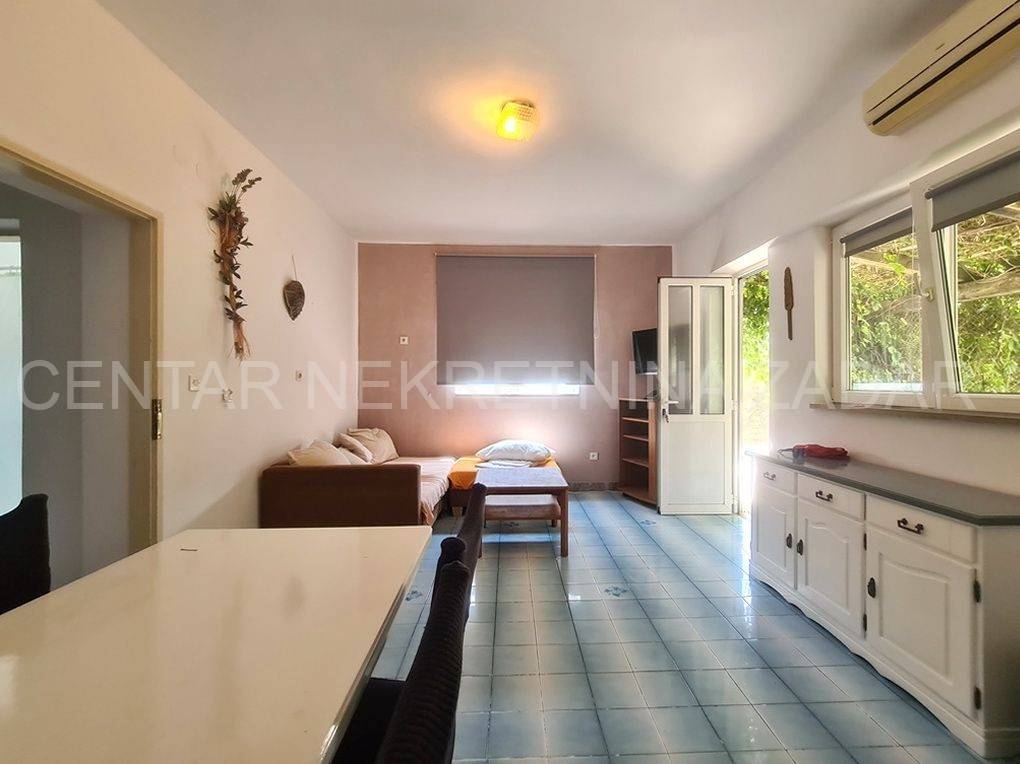 Prodaje se samostojeća kućau mjestu Tkon na otoku Pašmanu. Kuća ima ukupno 360.72 m2 te se sastoji od suterena (33.79 m2), prizemlja (150.11 m2 bez koeficijenta, odnosno 111.78 m2 s koeficijentom) i potkrovlja (110.01 m2). U suterenu su smješteni spremište (12.44 m2) i cisterna za vodu(21.35 m2), dok su u prizemlju smještena dva stana (46.48 m2 i 54.12 m2) koji imaju zajedničku terasu (44.71 m2 bez koeficijenta, odnosno 11.18 sa koeficijentom) te zajedničku praonicu/kupaonicu (4.8 m2). Stanoviimaju odvojene ulaze a sastoje se od hodinika, kupaonice, kuhinje, blagovaonice i dnevne sobe te jedan ima jednu spavaću sobu a drugi ima dvije spavaće sobe. Spavaće sobe oba stana imaju izlaz na zajedničku terasu sjeverne orijentacije s koje se pruža prekrasan pogled na more i Biograd na Moru. Hodnici oba stana povezani su prolazom te postoji mogućnost spajanja stanova u jedan veći trosobni stan. Kuća ima i veliki potencijal za potpunu prenamjenu svih prostorija. Grijanje i hlađenje jednosobnog stana osigurano je s peći na drva i klima uređajem dok je za dvosobni stan hlađenje osigurano stropnim ventilatorima.