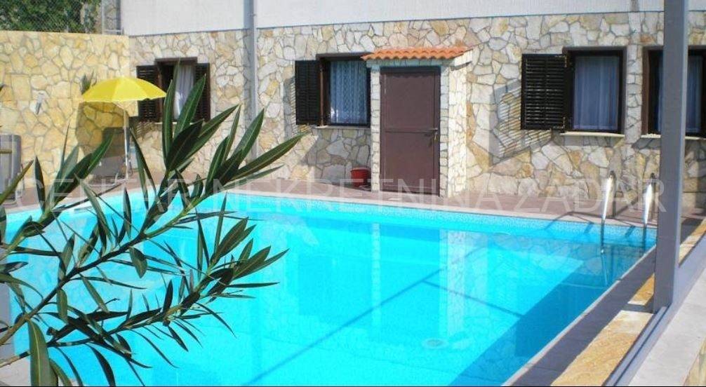 Prodaje se apartmanska kuća u Posedarju, izgrađena 1991. godine na zemljištu površine 1084 m. Kuća se sastoji od prizemlja i dva kata na kojima je deset apartmana (četiri dvosobna i šest jednosobnih), četiri sobe s kupaonicama te dva dvosobna stana. Sve jedinice imaju malu terasu pred ulazom, a s većine se pruža pogled na more. Apartmani su klimatizirani, namješteni i opremljeni. Na prvom katu je i restoran za goste apartmana potpuno opremljena kuhinja i sala za posluživanje hrane, a na drugom katu velika terasa s pogledom na more. Uz kuću je prostor za rekreaciju te bazen okružen visokom zelenom ogradom koja gostima omogućuje potpunu privatnost. U dvorištu je velika terasa sa zidanim kominom. Velika okućnica je ograđena i uređena, s 15 parkirnih mjesta. Kuća je od mora udaljena svega 70 m. Vlasnik ima osiguran prolaz do plaže preko zemljišta idealnog za odmor u prirodnoj hladovini. Za razgledavanje molim nazovite 099/325-2763.