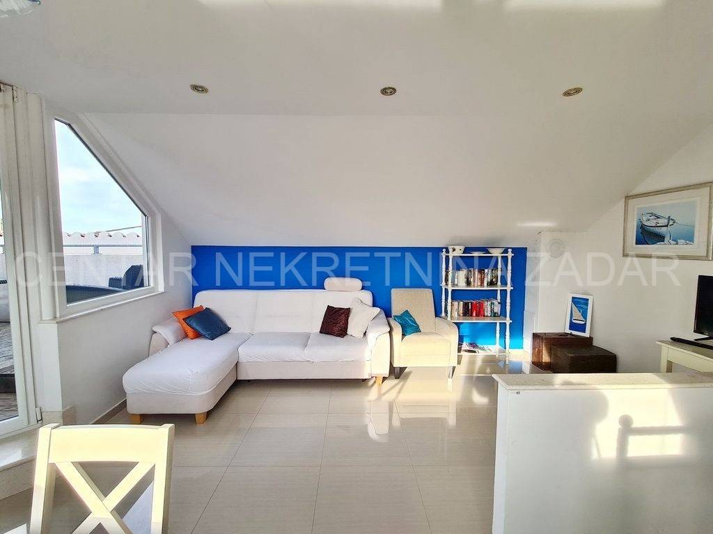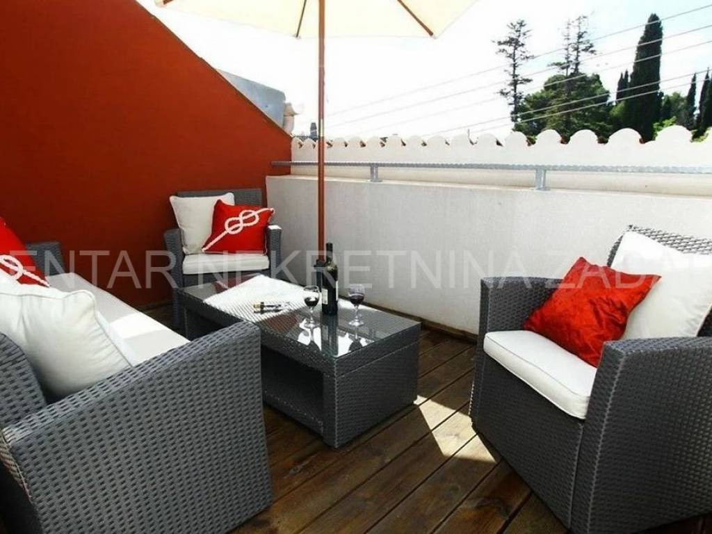 U prizemlju su kuhinja s blagovaonom i dnevnim boravkom, jedna spavaća soba, kupaonica i terasa. Na prvom katu su dvije spavaće sobe i kupaonica, a u potkrovlju veliki otvoreni prostor u kojem su kuhinja s blagovaonom i dnevni boravak, ostava te djelomično natkrivena lođa. Na lođi se možete odmarati u potpunom miru i privatnosti, a također i uživati u pogledu na park i more.