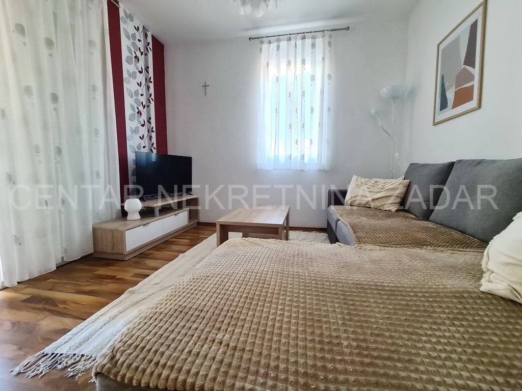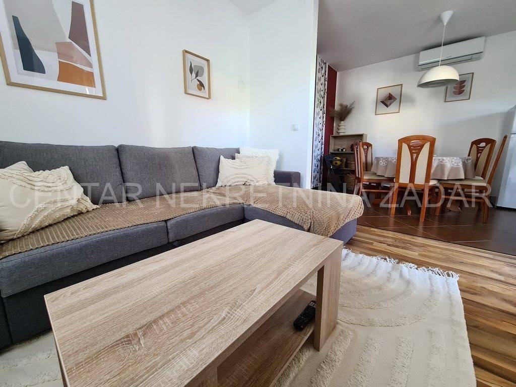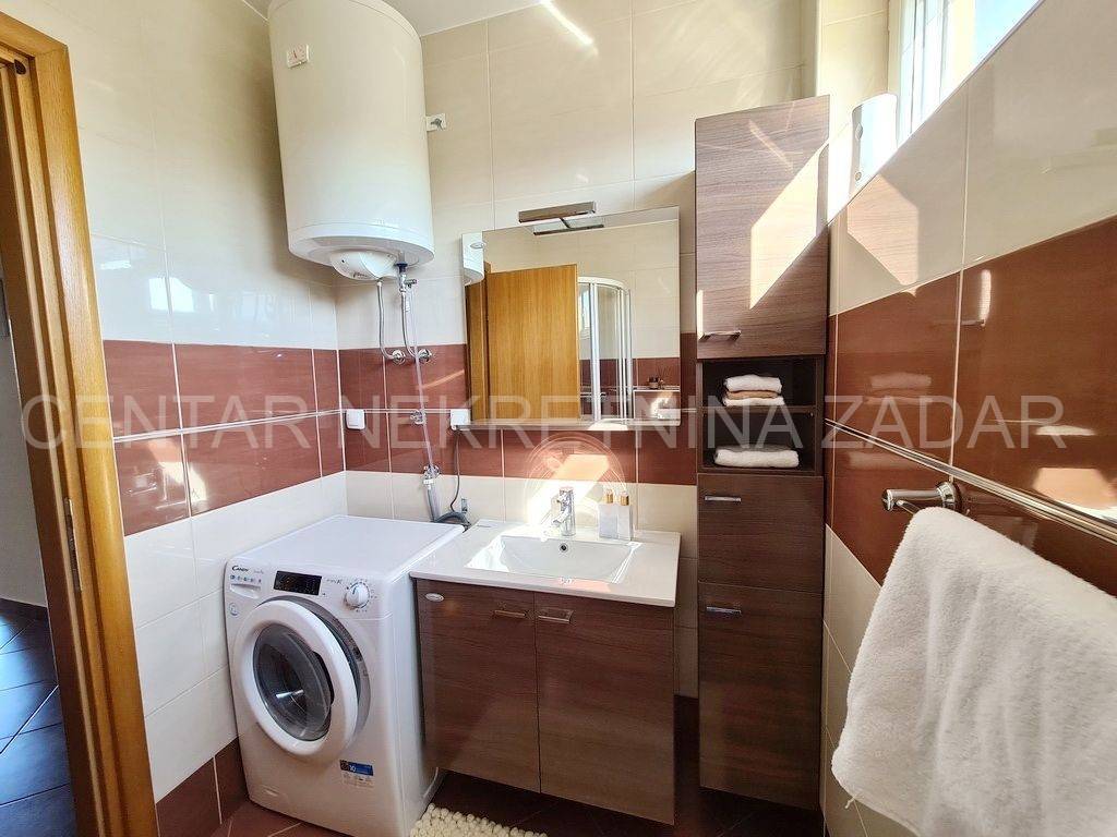 Apartman je potpuno namješten i opremljen za boravak 4-5 osoba. U kuhinji su perilica posuđa, pećnica, ploča za kuhanje itd., a u kupaonici perilica/sušilica rublja. Vlasnici poklanjaju kupcu i sve male kućanske aparate i posuđe. U blagovaoni je klima uređaj, a u dnevnom boravku dimnjak tako da se može postaviti peć na drva ili pelete.