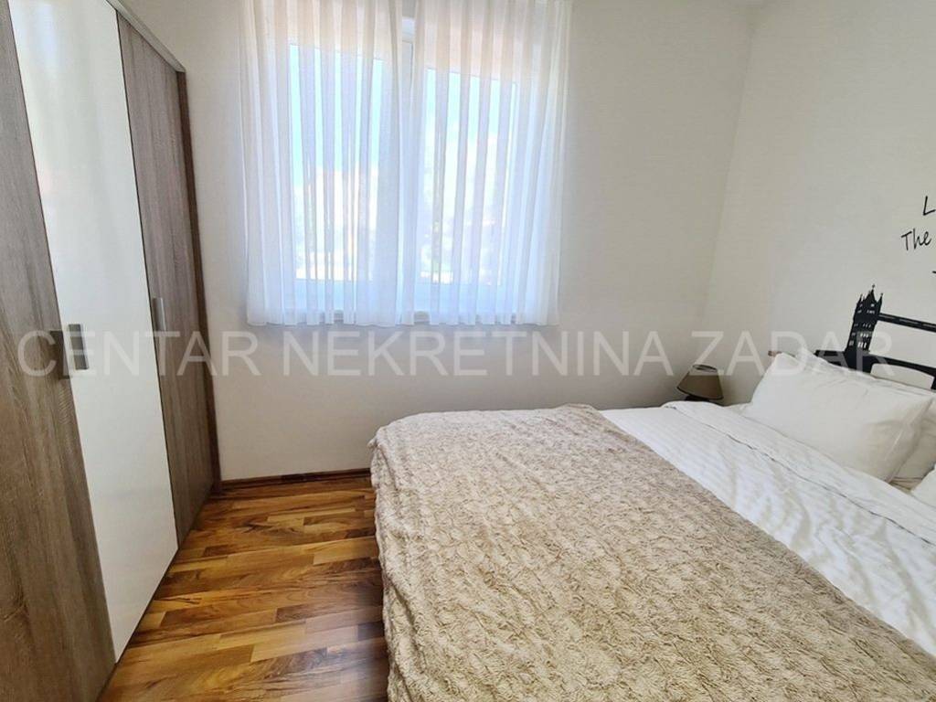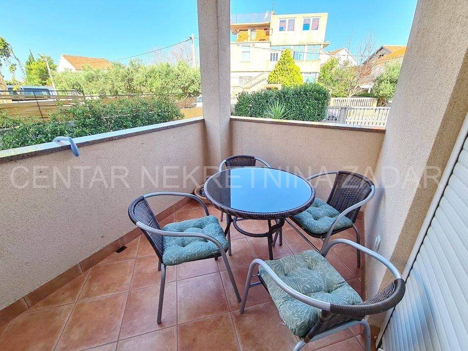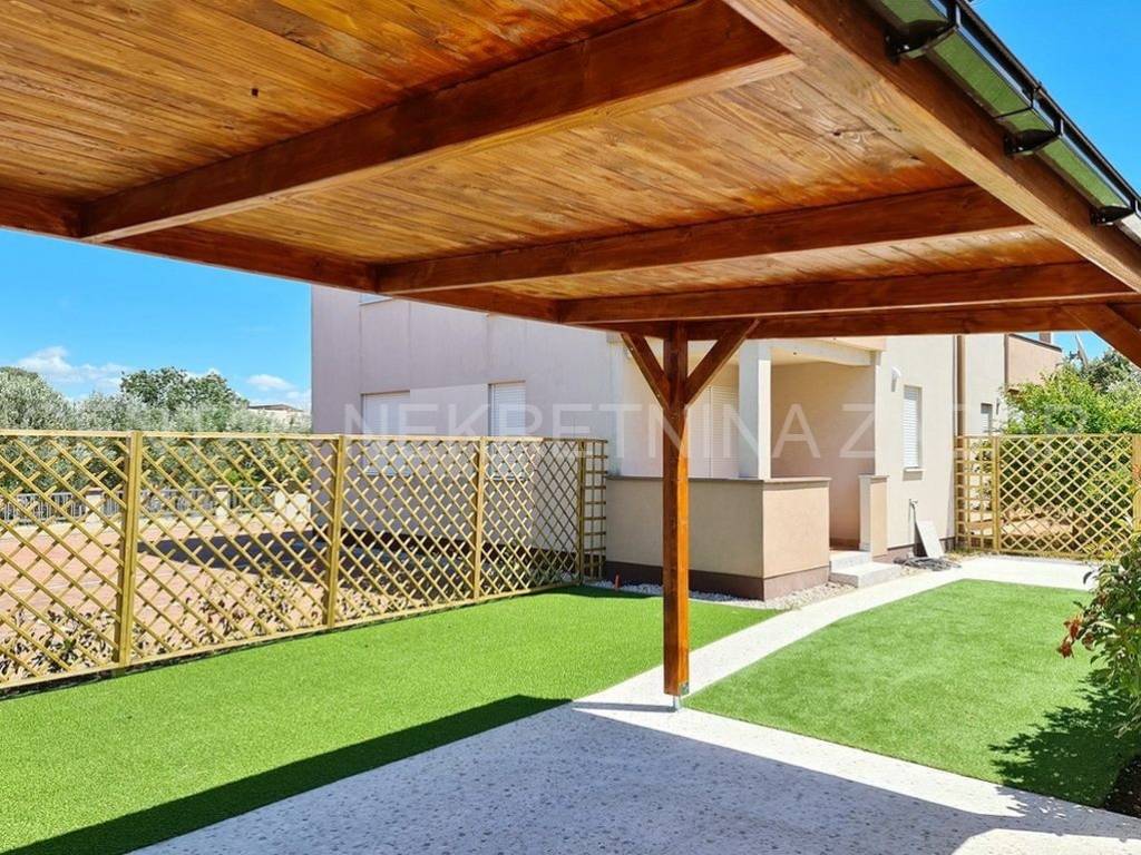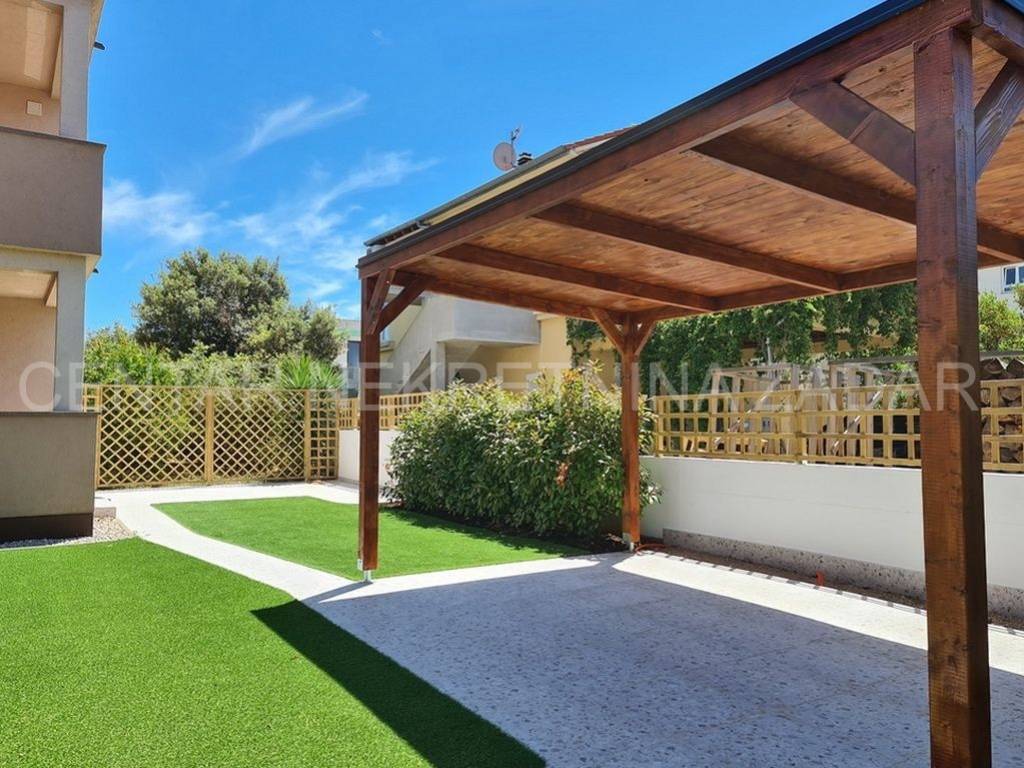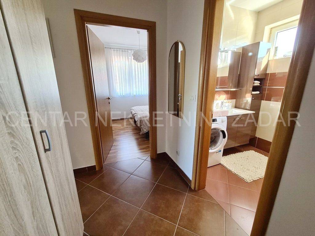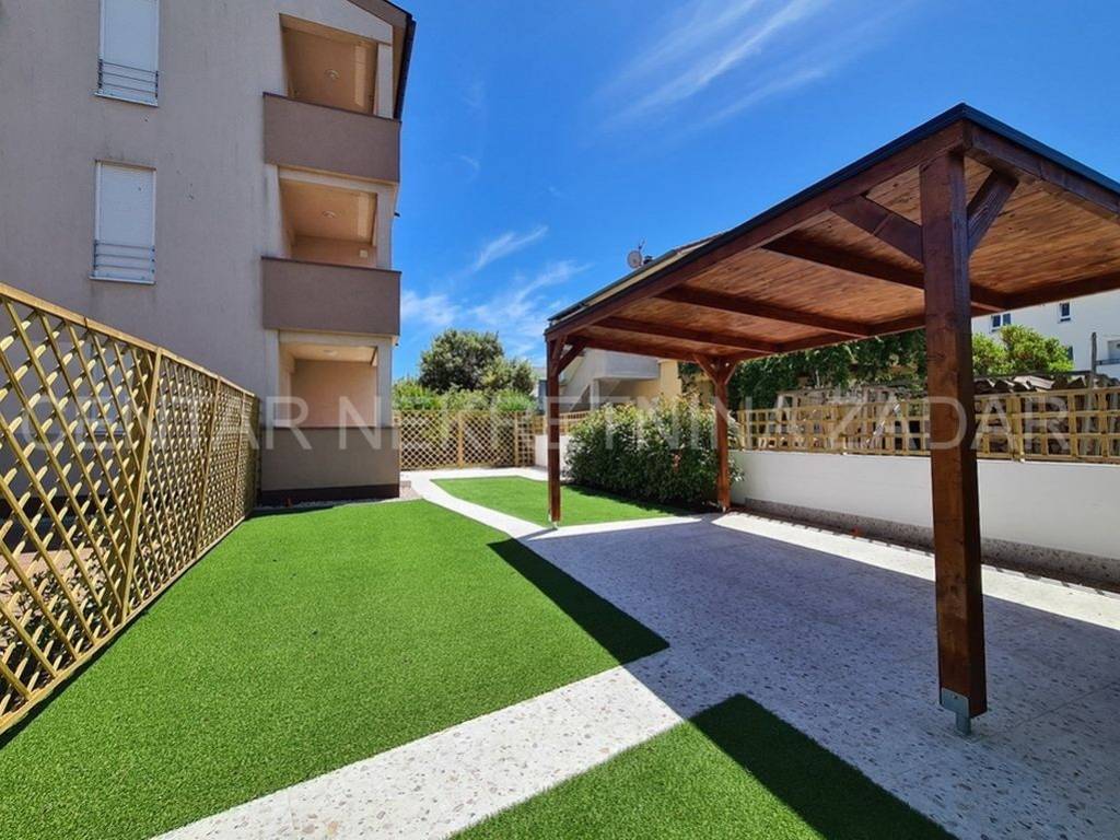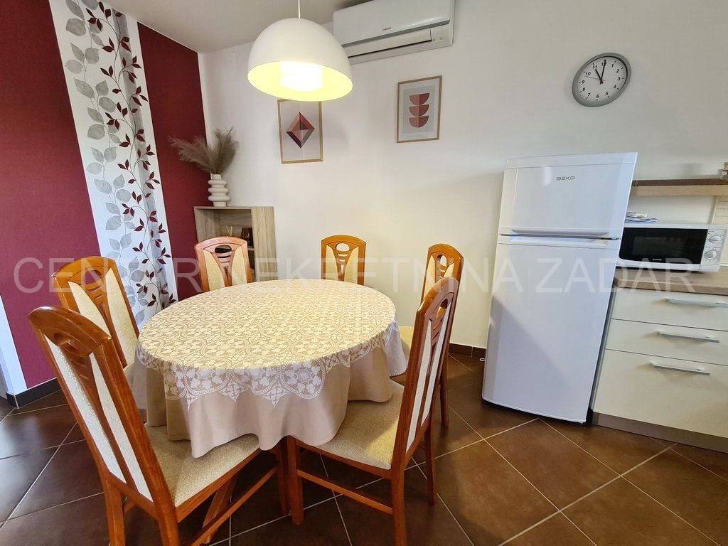 Prodaje se jednosobni apartman u mirnom dijelu Pakoštana. Nalazi se u prizemlju manje zgrade sa svega šest stambenih jedinica. Površina mu je 44,81 m i sastoji se od ulaznog hodnika, dnevnog boravka, kuhinje s blagovaonom, jedne spavaće sobe, prostrane kupaonice i natkrivene terase. Pripada mu jedno parkirno mjesto i kućni vrt površine 104 m.