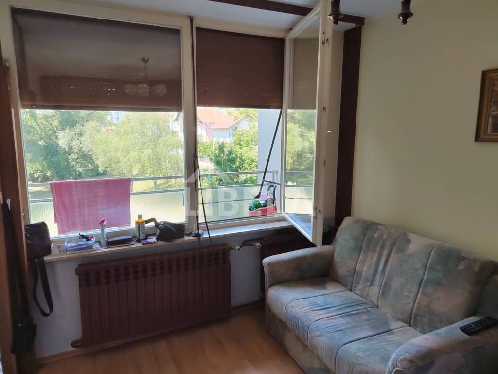 Zgrada ima lift te je u tijeku ugradnja fasade od kamene vune. Stan se sastoji se od hodnika, kupaonice, kuhinje i blagovaonice, lođe te odvojene sobe koja služi kao spavaća soba i dnevni boravak. Uz stan dolazi i ostava površine 5 m.