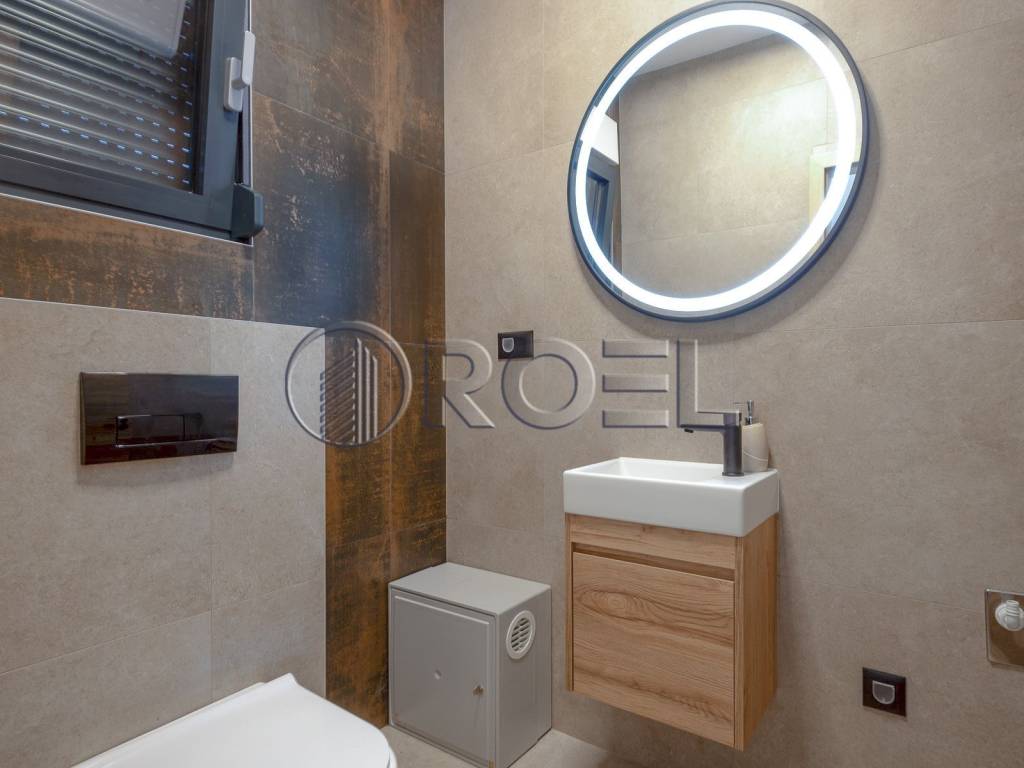 Kuća ukupne površine 144,20 m, od čega 90,11 m čini stambeni prostor, smještena je na parceli veličine 673 m. Sastoji se od prostranog open-space prostora koji objedinjuje kuhinju, blagovaonicu i dnevni boravak, dvije spavaće sobe, kupaonice s toaletom, dodatnog zasebnog toaleta te natkrivene terase s pogledom na dvorište i bazen.