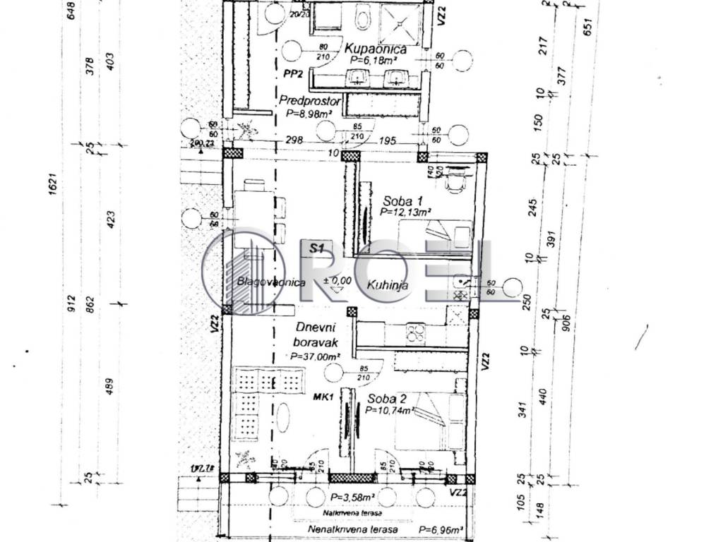 U prizemlju se nalazi trosoban stan ukupne neto površine 86 m2, a sastoji se od: ulaznog hodnika, kupaonice, dvije spavaće sobe, kuhinje, blagovaonice, natkrivene i nenatkrivene terase.Svi finalni radovi(keramika, LVT, sobna vrata i završno farbanje u dogovoru s kupcem što povećava cijenu za 8.000 EUR-a)