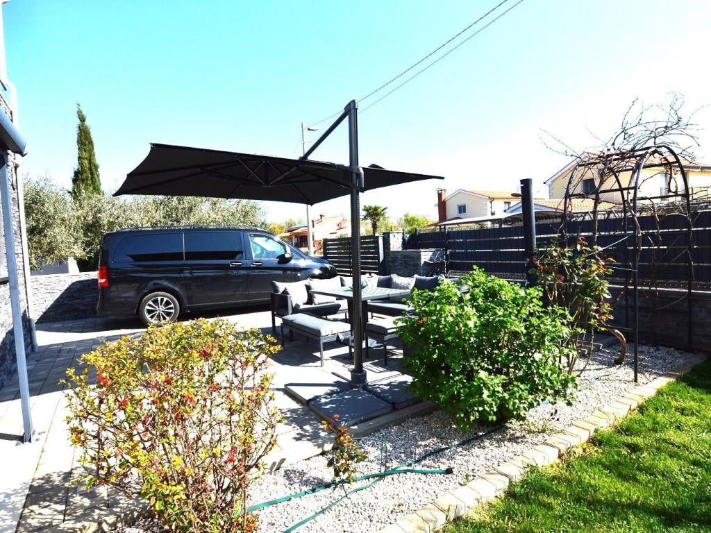 Prodaje se moderno uređena dvojna kuća ukupne površine 83 m, smještena u mirnom i zelenom okruženju nedaleko Poreča i svega nekoliko minuta vožnje od mora. Kuća se nalazi na parceli od 252 m, a iz kuće i s terasa pruža se pogled na more.Okućnica je pažljivo uređena, s posađenim stablom masline, raznolikim mediteranskim biljem i cvijećem, idealna za opuštanje i boravak na otvorenom. Uz kuću se nalazi i spremište, te dodatni montažni kontejner koji služi kao dodatni skladišni prostor.Prizemlje kuće se sastoji od predsoblja , toaleta, moderne kuhinje, te dnevnog boravka sa blagovaonicom.Stepenište vodi na kat gdje se nalaze dvije spavaće sobe , sa izlazom na terase te kupatilo.Jedna je terasa natkrivena za uživanje u sunčanim danima, dok je druga nenatkrivena i ima pogled na more.Kuća se grije i hladi putem klima uređaja. Nekretnina je idealna kako za obiteljski život, tako i za turistički najam, zahvaljujući lokaciji, funkcionalnom rasporedu i blizini mora.
