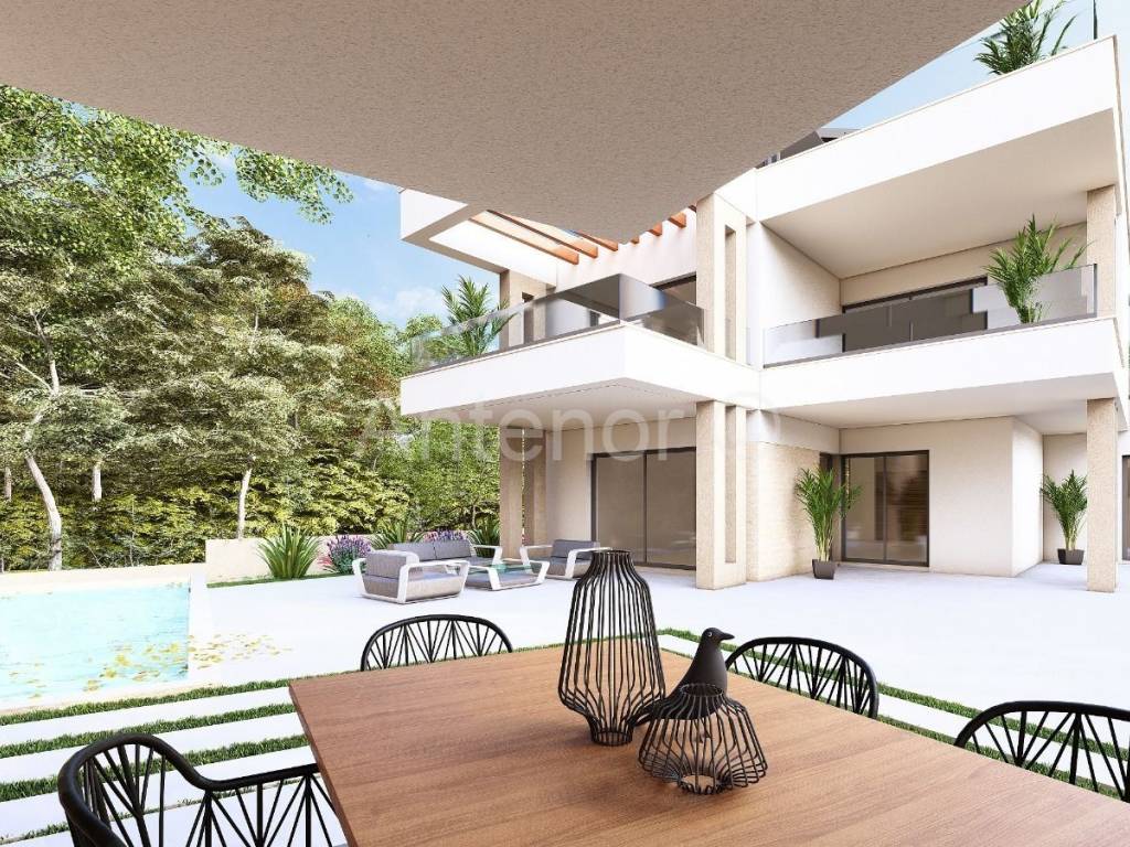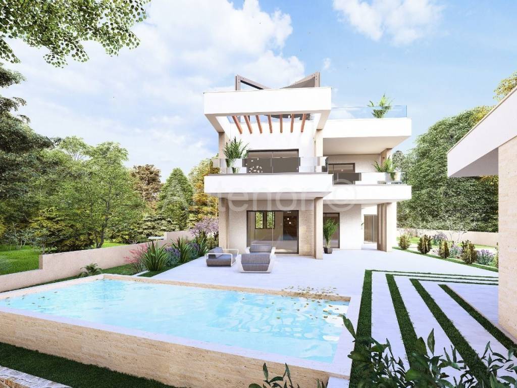 Vrsi - građevinsko zemljište s projektom za gradnje viletlocrtne površine 317,53 m2. Prema projektu vila se sastoji od prizemlja, kata i krovne terase, te bazena u dvorištu kuće i pomocna građevina s nadstresnicom. Prema projektu u prizemlju se nalazi ulaz, hodnik, ostava, vešeraj, spavaća soba, kupaonica, kuhinja, blagavaona, dnevni boravak, terasa te stubište koje vodi na kat. Na katu se nalaze još dvije spavaće sobe, kupaonica, atrij, terasa i lođa. Dimenzije parcele su cca 28 m x 48 m. Udaljenost parcele od mora je cca 1,5 km, a od centra 400 m. Sa samog zemljista se pruza pogled na more.
