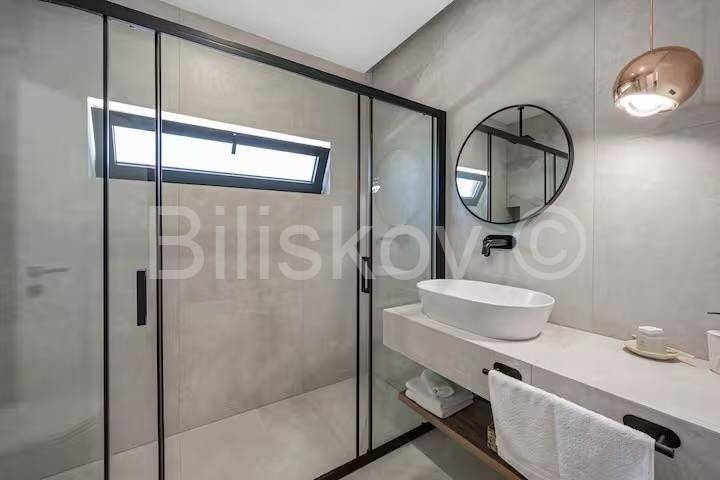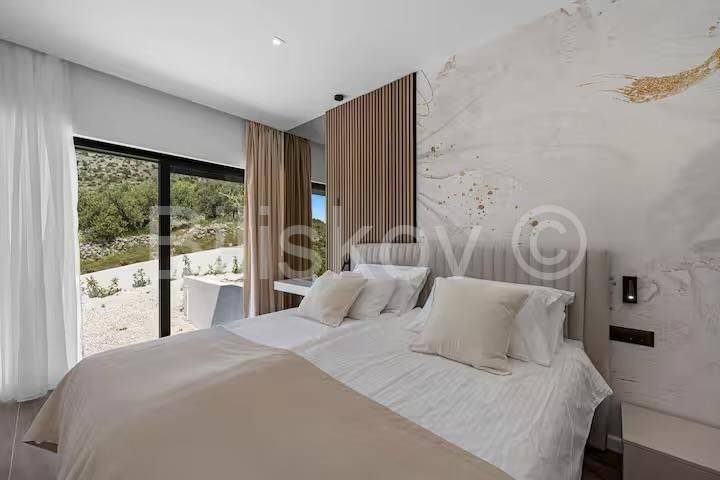 Unutrašnjost vile čine tri prostrane spavaće sobe, moderna kuhinja s blagovaonicom te elegantan dnevni boravak. Posebna prednost ove nekretnine su dva bazena okružena prostranim sunčalištima i uređenim vrtom, idealnim za opuštanje i uživanje u mediteranskom ugođaju. Velika okućnica nudi dovoljno prostora za dodatne sadržaje te privatni parking.