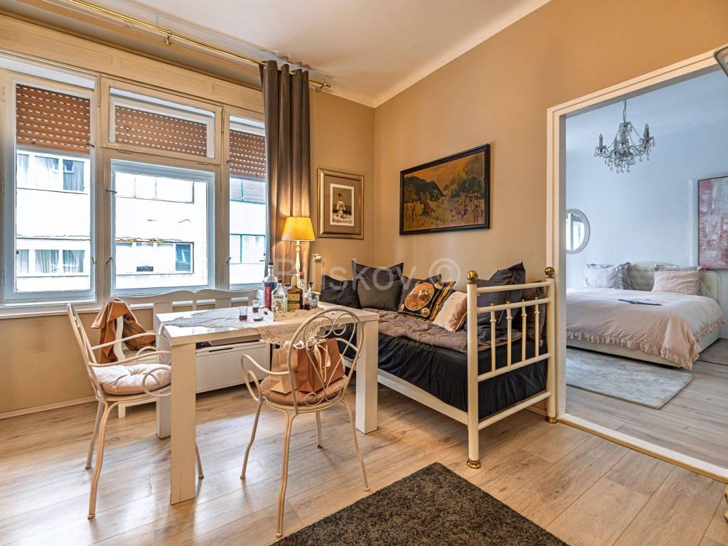 Divan građanski stan na atraktivnoj lokaciji ukupne površine 44,95 m2. Nalazi se na prvom katu zgrade izgrađene 1936 godine.