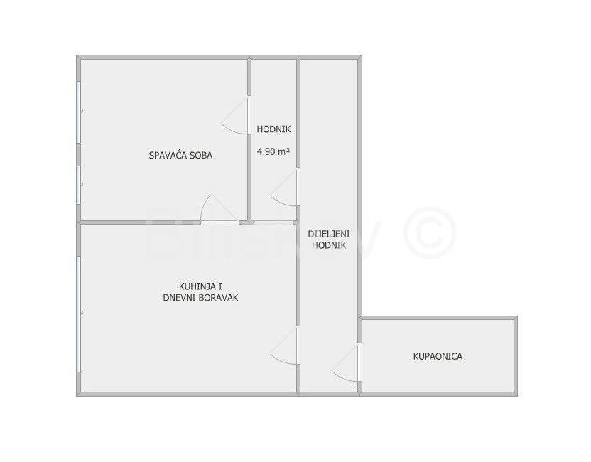 Stan je renoviran 2021 godine kada su zamijenjene instalacije struje i vode, postavljeni novi podovi a, nedavno je uveden i video portafon. Sastoji se od ulaznog hodnika koji ovaj stan dijeli sa dva susjedna stana, open space dnevnog boravka povezanog sa kuhinjom, spavaće sobe i kupaonice. Pripada mu i podrumsko spremište te tavanski prostor.