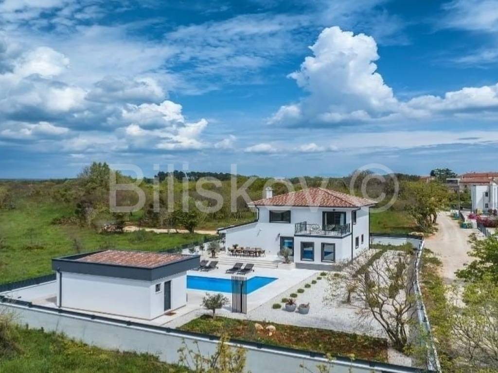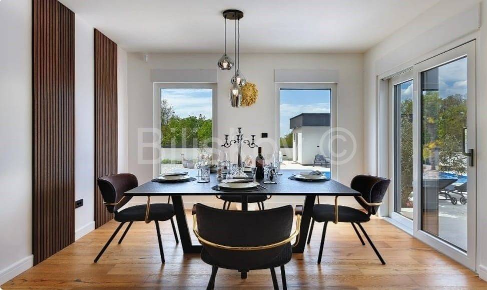 Moderna niskoenergetska kuća od 128 m2 raspoređena na dvije etaže, izgrađena 2022 godine na zemljištu od 785 m2.