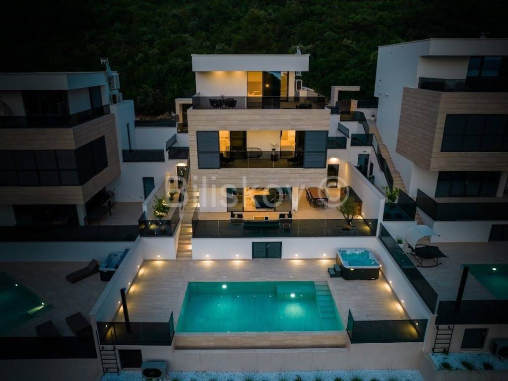 Sastoji se od dnevnog boravaka u sklopu kuhinje i blagovaone (otvoreni koncept) sa izlazom na veliku terasu gdje se nalazi grijani bazen i jacuzzi, tri spavače sobe i četiri kupaonice.