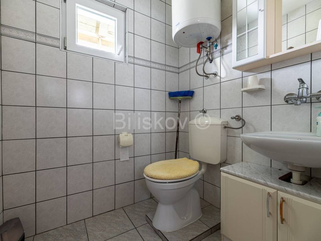 U prizemlju se nalazi kuhinja sa blagovaonicom i dnevnim boravkom, kupaonice, spremišta i prostranog pretprostora.
