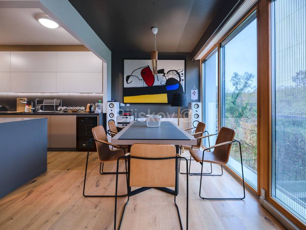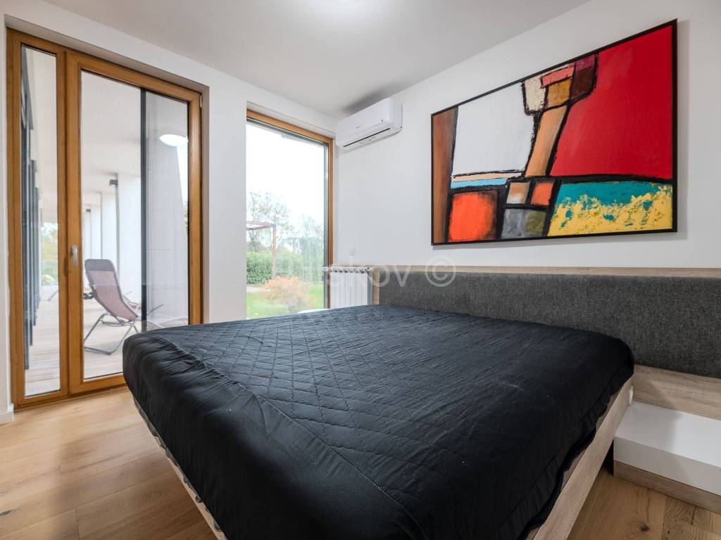 Sastoji se od ulaznog prostora, četiri spavaće sobe, prostranog dnevnog boravka, kuhinje, gospodarstva, tri kupaonice te jednog gostinjskog WC-a. Stanu također pripada i nenatkrivena terasa površine 36m2 te vrt površine 217m2.