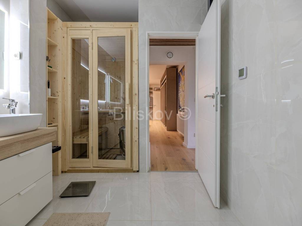 Luksuzan peterosoban stan površine 210,78 m2 NKP na -1 etaži kaskadno sagrađene vile iz 2020 godine. Zgrada nema lift.