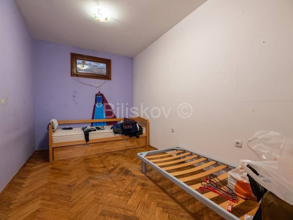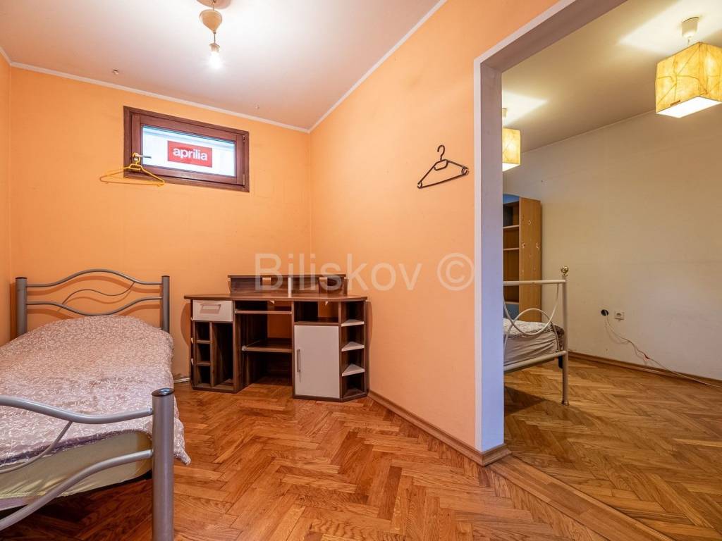 www.biliskov.com ID 14840 Peščenica Samostojeća prizemnica površine 120 m2 na parceli od 174 m2 sagrađena 1997.g. Kuća se sastoji od četiri spavaće sobe, dnevnog boravka integriranog sa kuhinjom i blagovaonicom, kupaonice, kotlovnice i garaže. Uređena je i namještena. Okućnica je površine 50 m2. Nalazi se na odličnoj lokaciji, na svega 2 minute hoda od tramvajske stanice, a u okolici se nalazi i nekoliko trgovačkih centara, Dom zdravlja, škola, vrtić, te svi ostali bitni sadržaji. Grijanje: centralno na drva Orijentacija: Jug-Sjever EC: u izradi Cijena: 250.000 Agencijska naknada za kupca iznosi 2%+PDV
