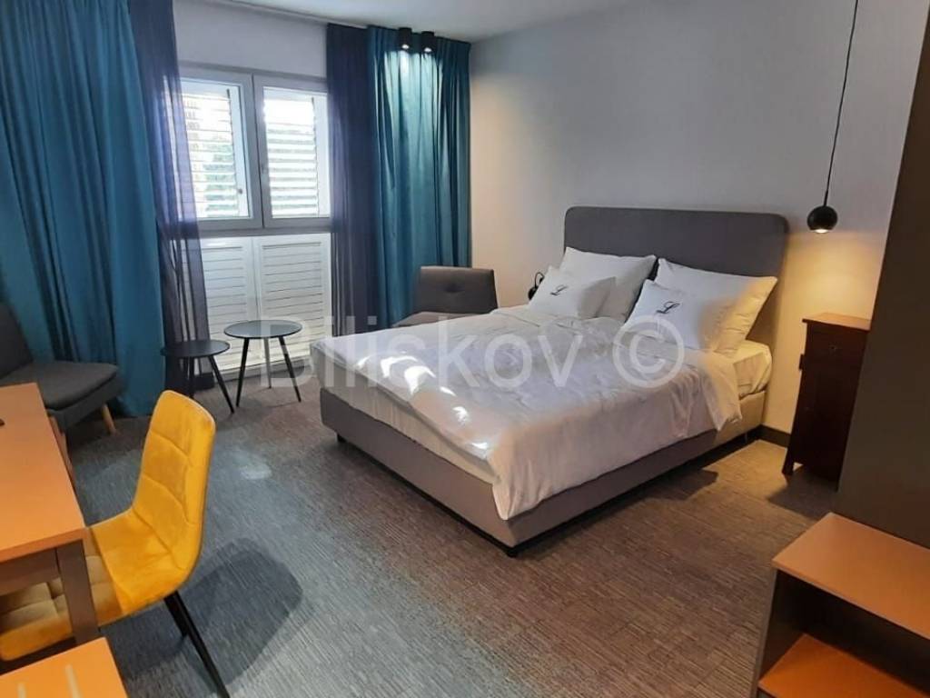 Na gornjim etažama su raspoređeni apartmani, jednokrevetne i dvokrevetne sobe. Sve smještajne jedinice imaju kupaonicu s wc-om i opremljene su sustavima grijanja i hlađenja.