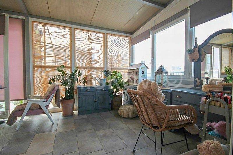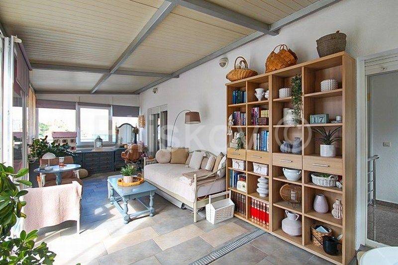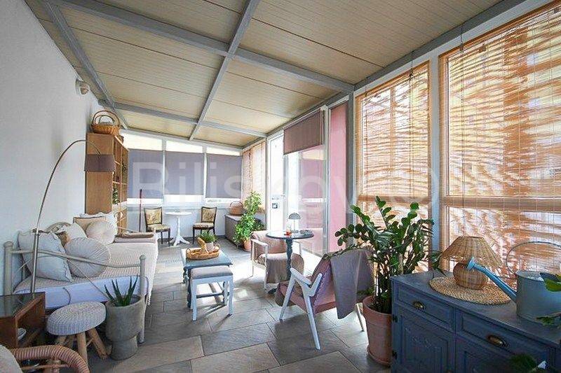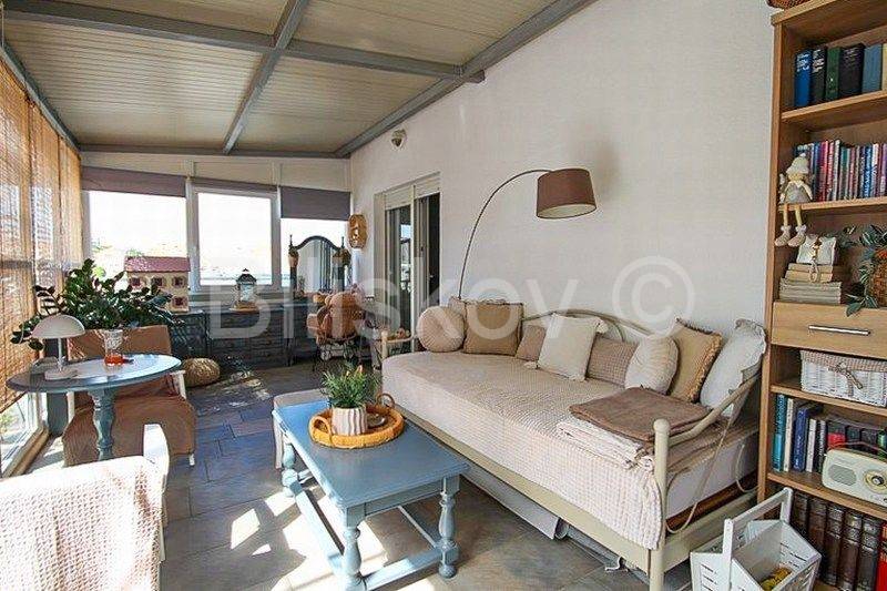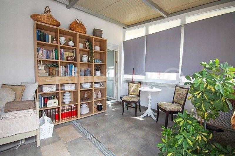 Terasa je cijela na jugu; dio terase je natkriven (cca 25 m2) i zatvoren staklenim stjenkama i iskorišten kao drugi dnevni boravak.