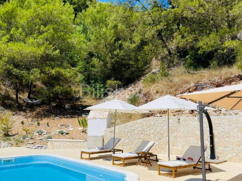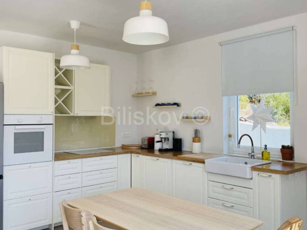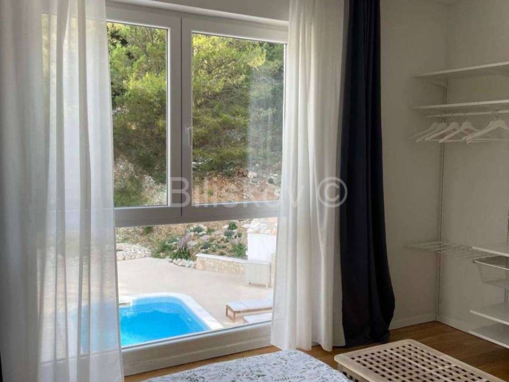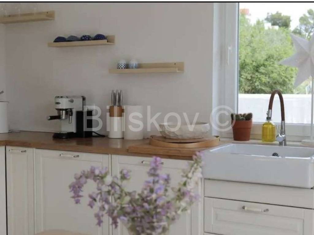 Brač, Pučišća, u privatnoj kući na dvije etaže, stan ukupno korisne površine 100m2. Prva etaža sastoji se od kuhinje s trpezarijom, ostave i toaleta. Dvije spavaće sobe i kupatilo nalaze se na drugoj etaži. Izlaskom iz dnevnog boravka dolazi se na veliku terasu opremljenu ležaljkama, stolom, stolicama, roštiljem te pristup bazenu zaklonjeno od pogleda i omogućavajući trenutke potpunog opuštanja. Prostor je klimatiziran, opremljen, useljiv 01.10. te dostupno do sezone. Od centra mjesta i plaže udaljena je 800m te je sav potreban sadržaj u neposrednoj blizini Parking je osiguran. Polog iznosi jednu mjesečnu najamninu. Agencijska provizija iznosi jednu mjesečnu najamninu uvećanu za pripadajući PDV. www.biliskov.com ID:14557-1