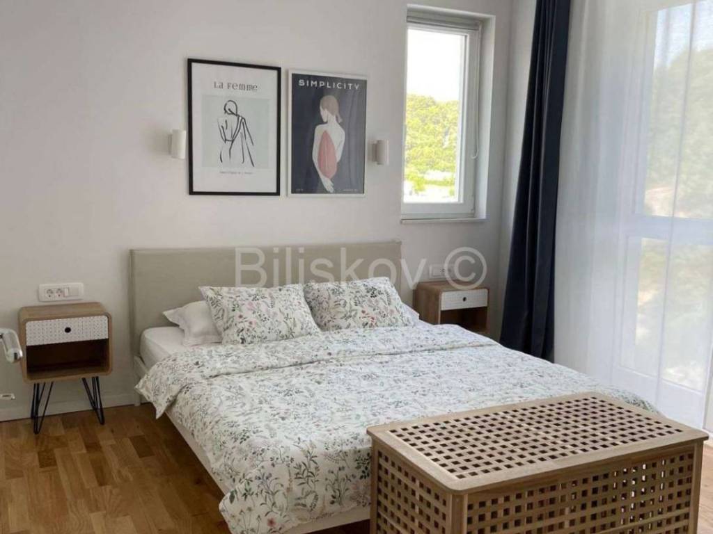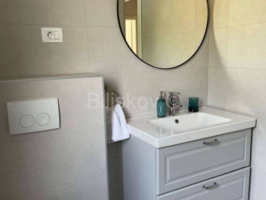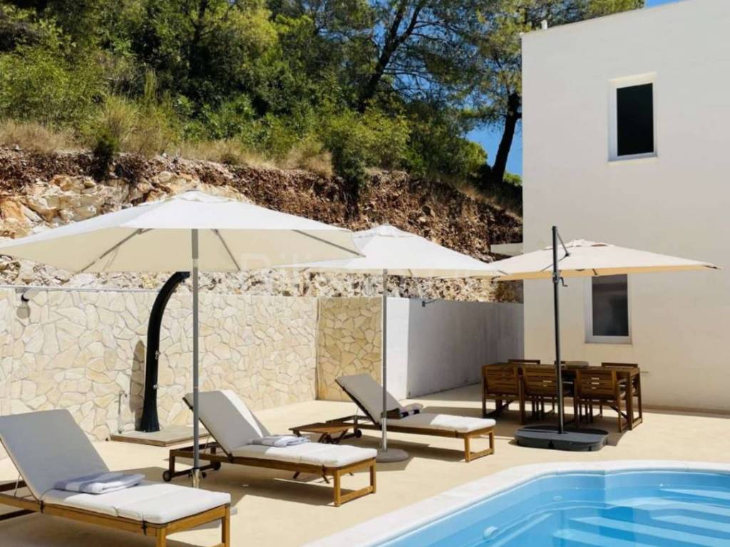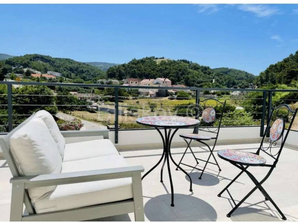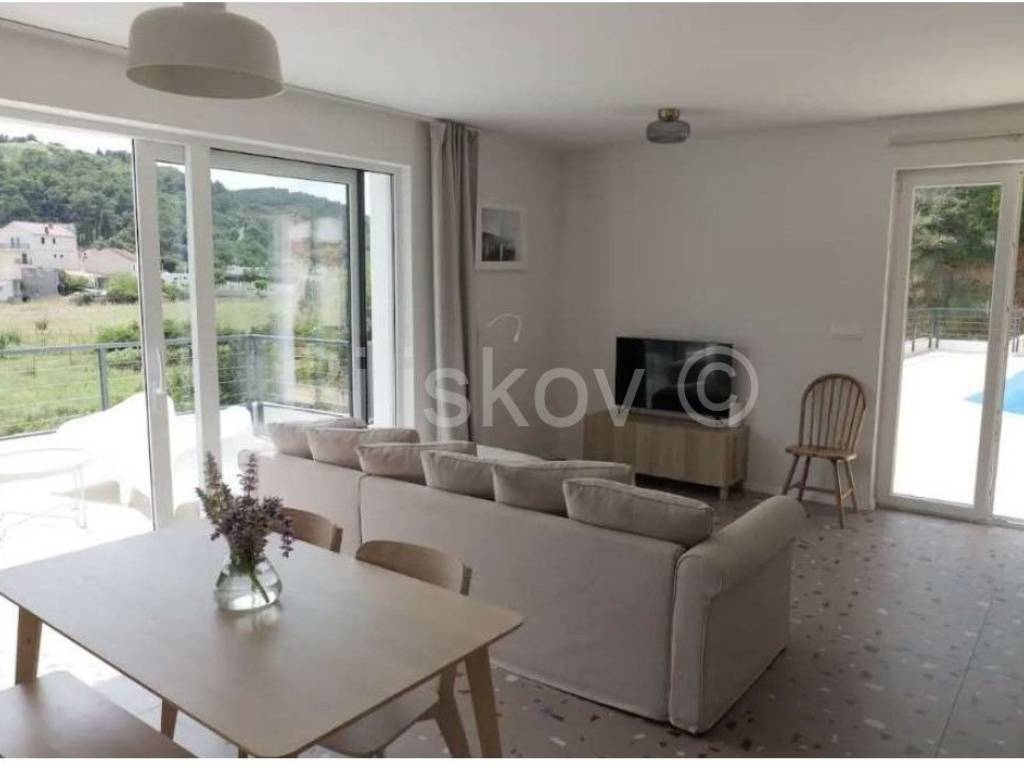 Brač, Pučišća, u privatnoj kući na dvije etaže, stan ukupno korisne površine 100m2. Prva etaža sastoji se od kuhinje s trpezarijom, ostave i toaleta. Dvije spavaće sobe i kupatilo nalaze se na drugoj etaži. Izlaskom iz dnevnog boravka dolazi se na veliku terasu opremljenu ležaljkama, stolom, stolicama, roštiljem te pristup bazenu zaklonjeno od pogleda i omogućavajući trenutke potpunog opuštanja. Prostor je klimatiziran, opremljen, useljiv 01.10. te dostupno do sezone. Od centra mjesta i plaže udaljena je 800m te je sav potreban sadržaj u neposrednoj blizini Parking je osiguran. Polog iznosi jednu mjesečnu najamninu. Agencijska provizija iznosi jednu mjesečnu najamninu uvećanu za pripadajući PDV. www.biliskov.com ID:14557-1