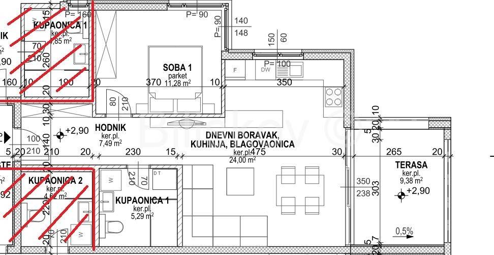 Dvosobni apartman zatvorene površine 57,63m2 na 1. katu zgrade sagrađene 2024. godine.