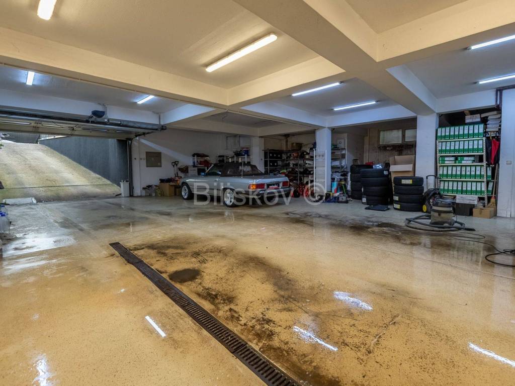 Podrum: ulaz je omogućen preko rampe sa stražnje strane objekta a u podrumu se trenutno nalazi prostor za uređivanje vozila i manje servise sa skladištem. Ulazna vrata su industrijska Hormann s prolaznim vratima sa električnim upravljanjem, pod je industrijski te postoje prozori-svjetlarnici. Iz podruma je stepenicama moguća komunikacija sa prizemljem (170 m2).