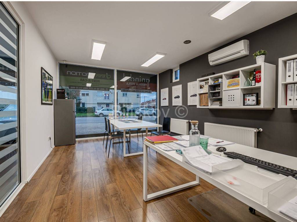 Prizemlje: glavni ulaz u stubište objekta i ulaz u prostor (trenutno izložbeni auto salon/rent-a-car), wc i čajna kuhinja. Na podu se nalazi kvalitetna keramika a strop je Knauf sa ugrađenom LED rasvjetom, prostor klimatiziran (170 m2).