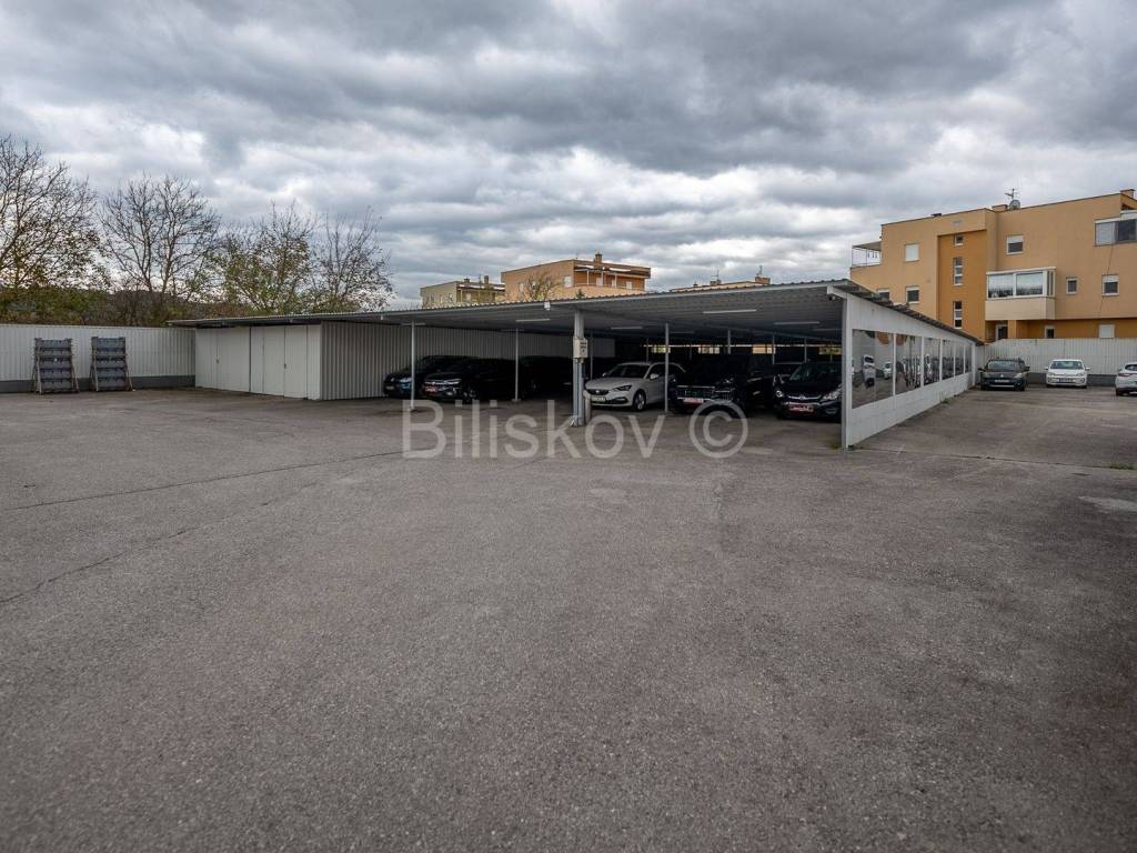 Površina zemljišta je 1.858 m2, asfaltirano je u cijelosti, ograđeno novom ogradom visine oko 2,20 m i osvijetljeno je reflektorima. Na parkiralištu se nalazi i nadstrešnica za smještaj 80 vozila. Nadstrešnica je osvijetljena s 40-tak neonskih svjetiljki.