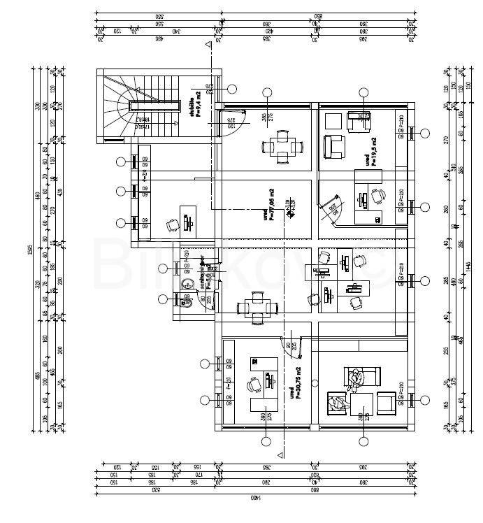 Prvi kat: ulaz sa stubišta, veći prostor, trenutno knjigovodstveni ured sa 6 radnih mjesta i 2 stola za stranke, dvije odvojene kancelarije, wc i čajna kuhinja. Na podu se nalazi laminat a strop je Knauf sa ugrađenom kvalitetnom rasvjetom, prostor klimatiziran (170 m2) .