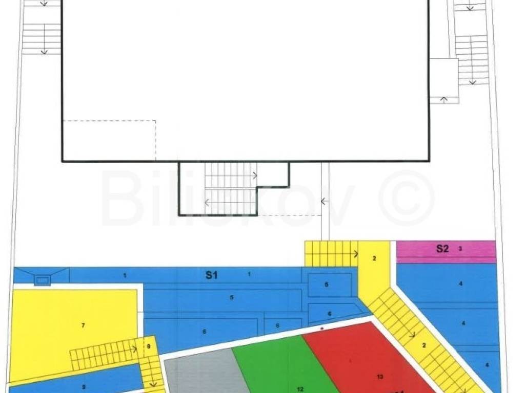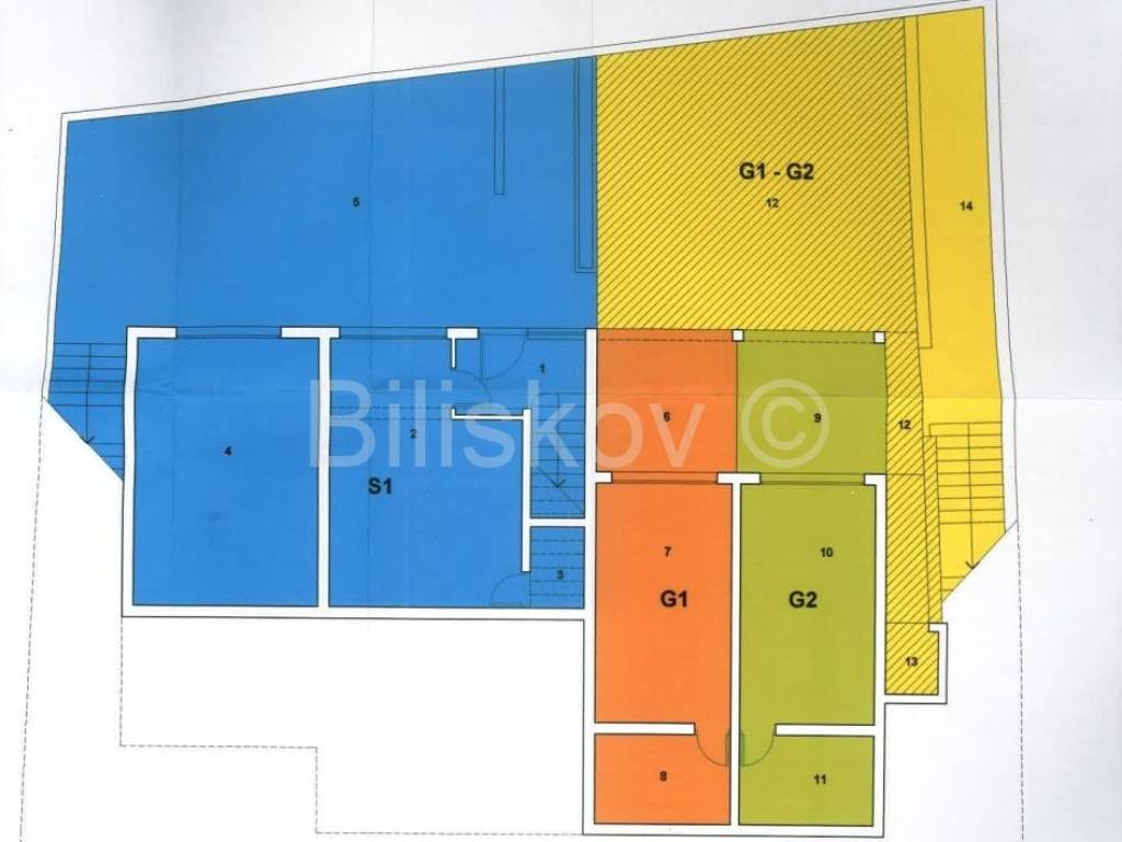 U suterenu se nalaze dvije garaže površina 22,23m2 s pripadajućim pretprostorima i ostavama u svakoj te dio jednog stana koji je u ulozi konobe.