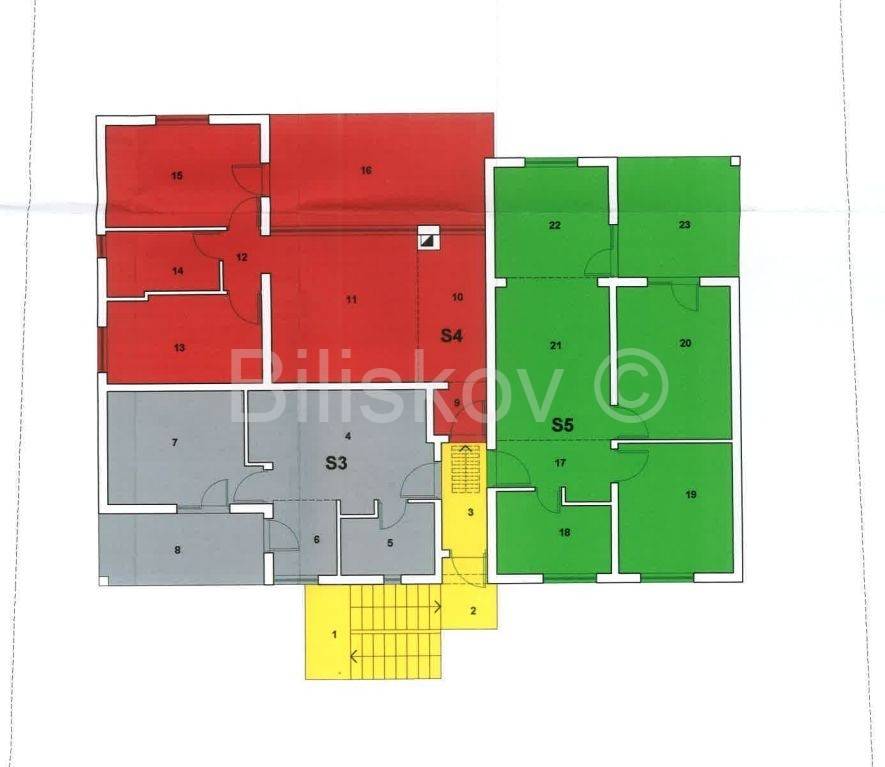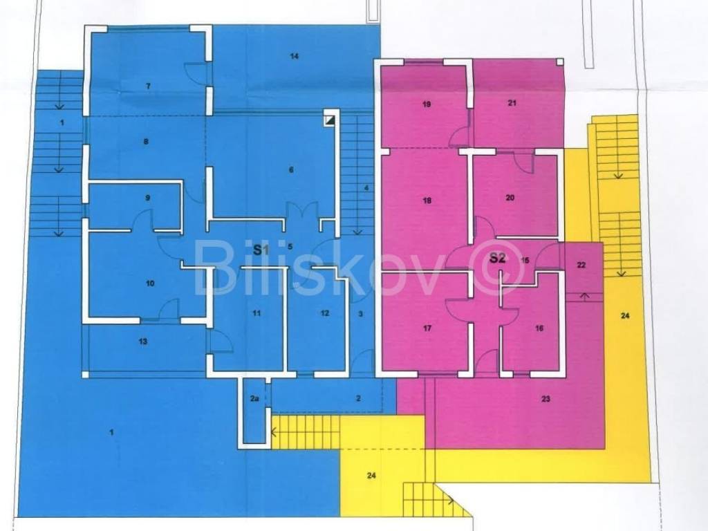 Dva su stana u prizemlju, jedan trosobni i jedan četverosobni.
