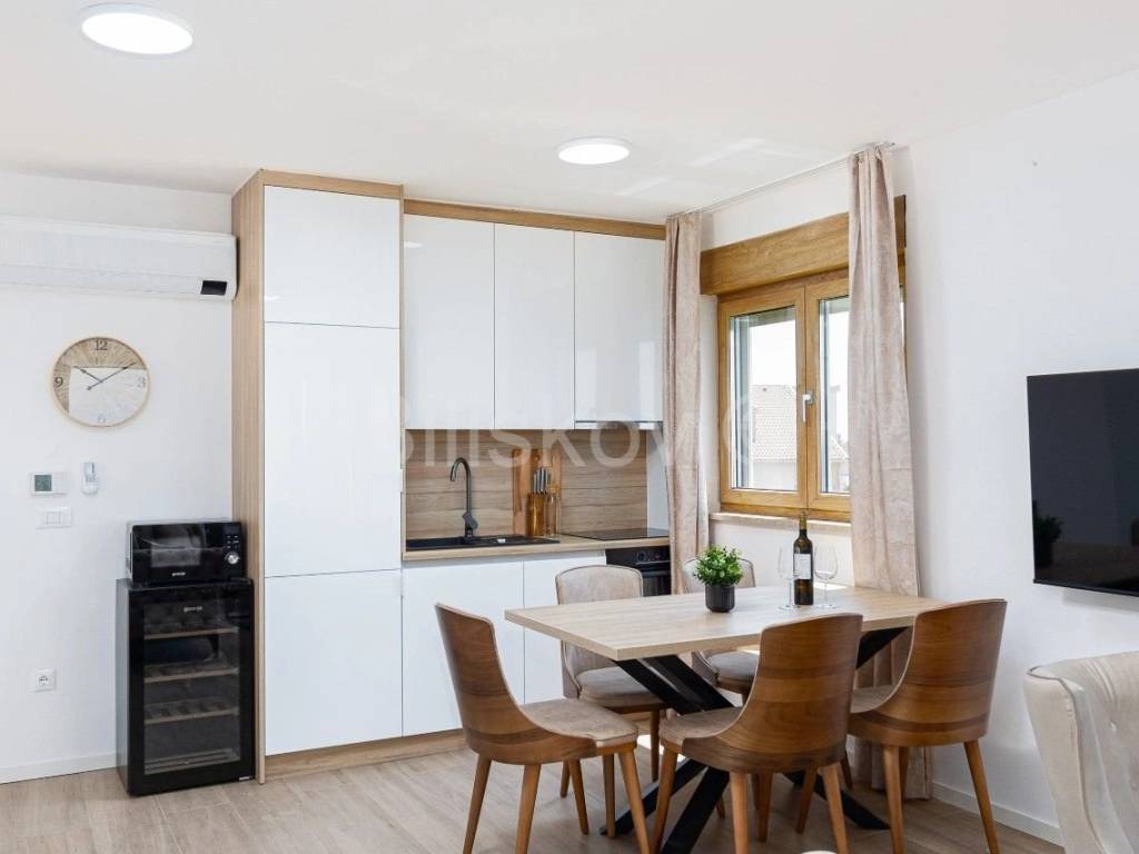 Ovaj dvosobni komforni apartman sastoji se od: jedne spavaće sobe, dnevnog boravka s kuhinjom i blagovaonom, kupaonice, radne sobe, balkona i galerije sa pripadajućim stubištem.
