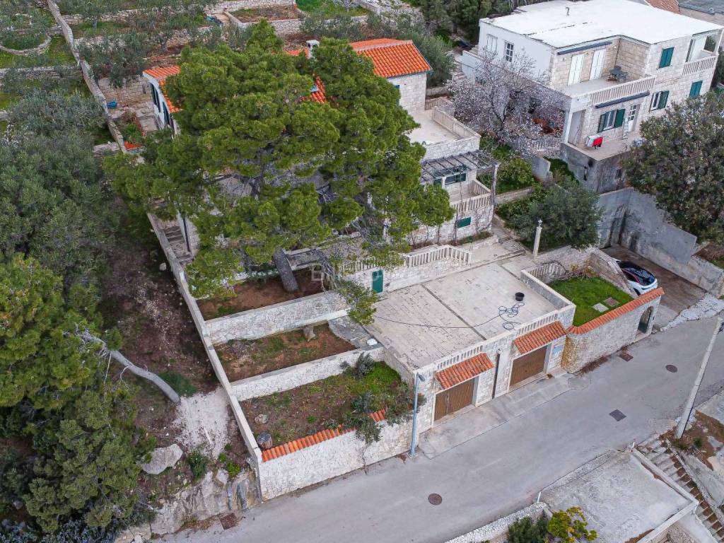 Brač, Selca, Sumartin, samostojeća kuća površine 303m2 na 3 etaže sa okućnicom od 815m2 i građevinskim zemljištem uz vilu površine 690m2.